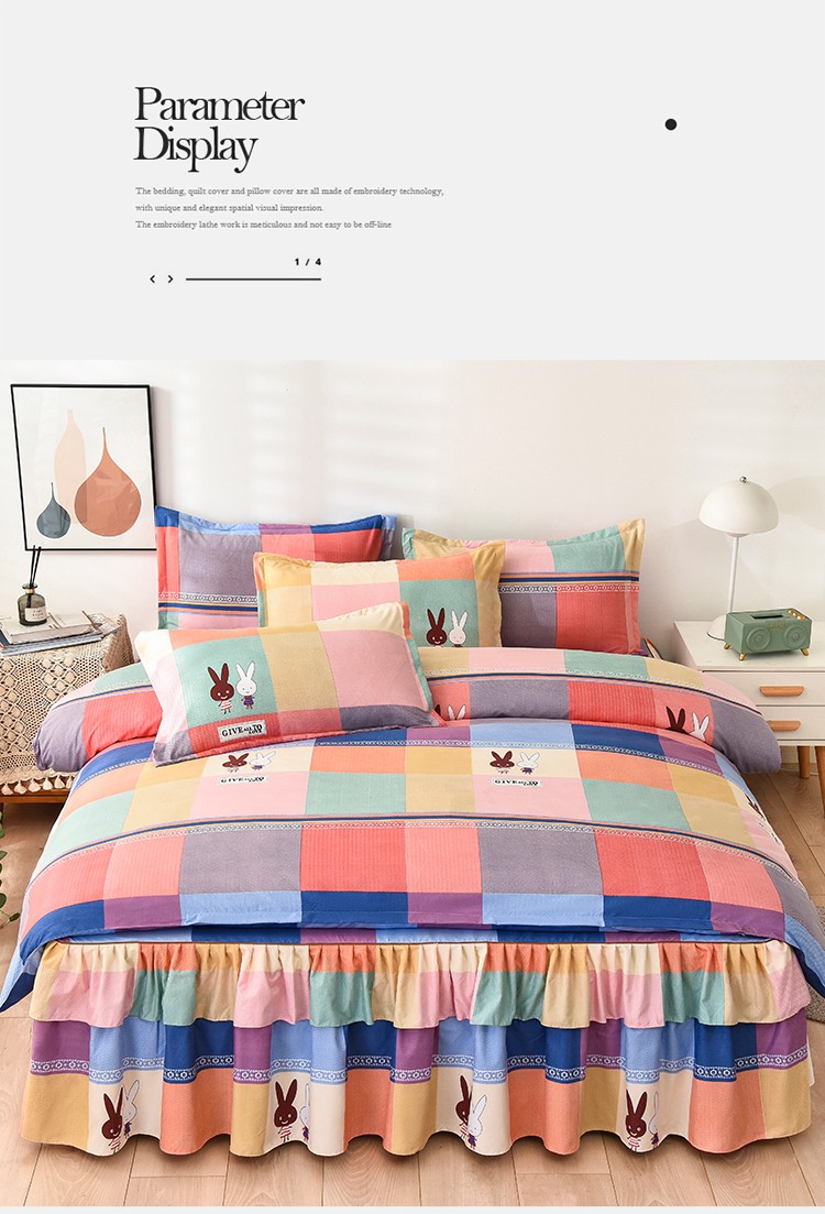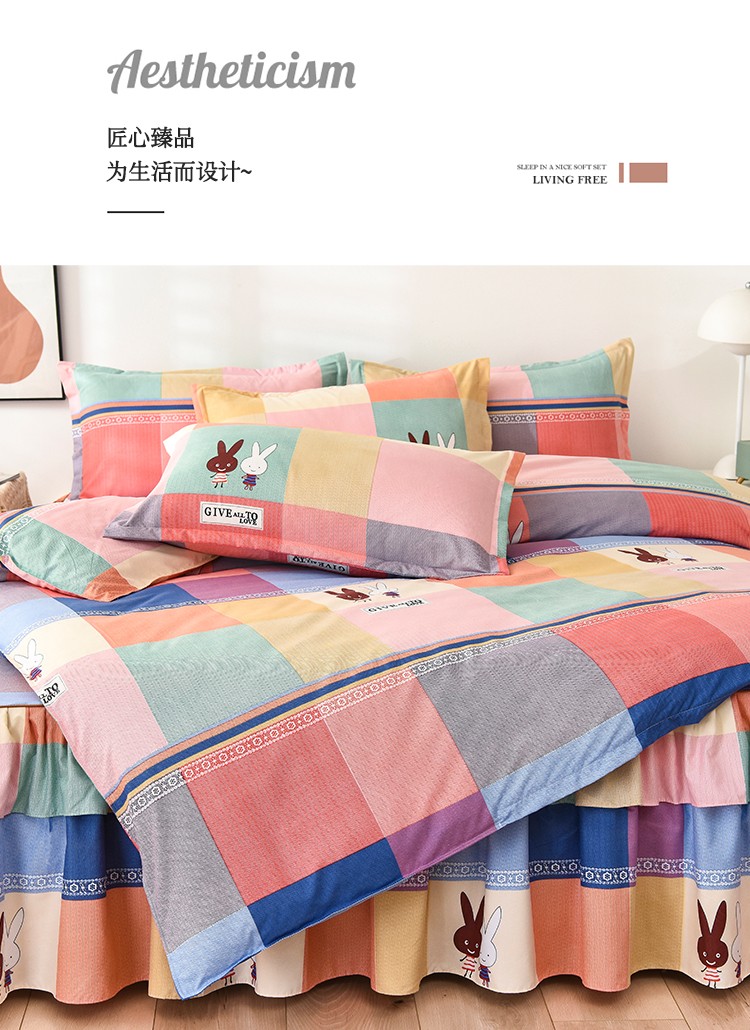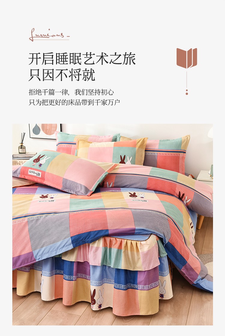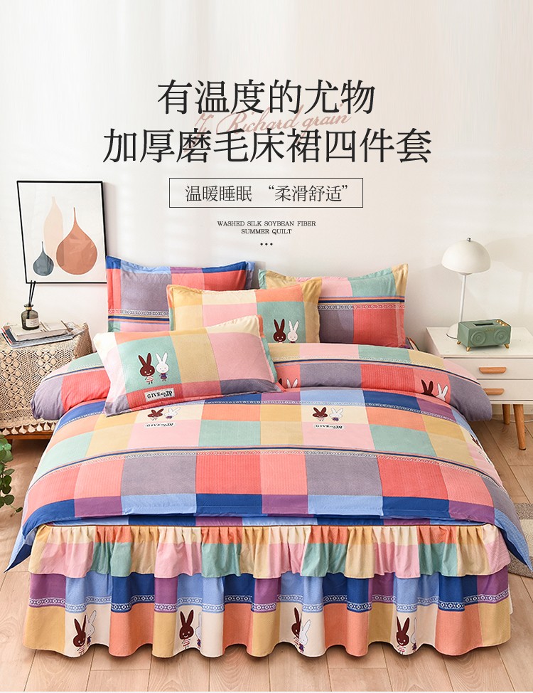 商品名称:代芙 2022新款加厚磨毛双边床裙四件套 彩格兔