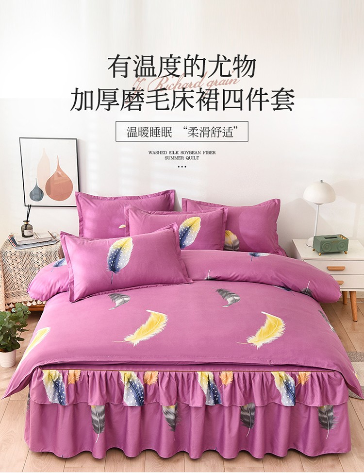 商品名称:代芙 2022新款加厚磨毛双边床裙四件套 满天飞羽