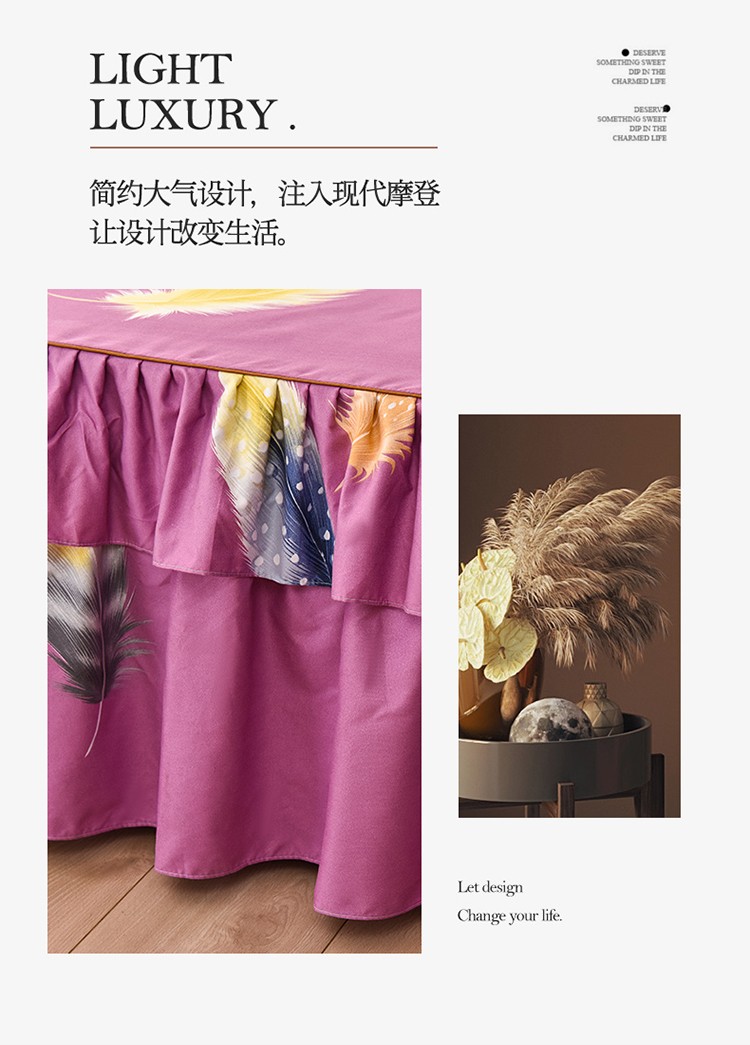 代芙 2022新款加厚磨毛双边床裙四件套 满天飞羽