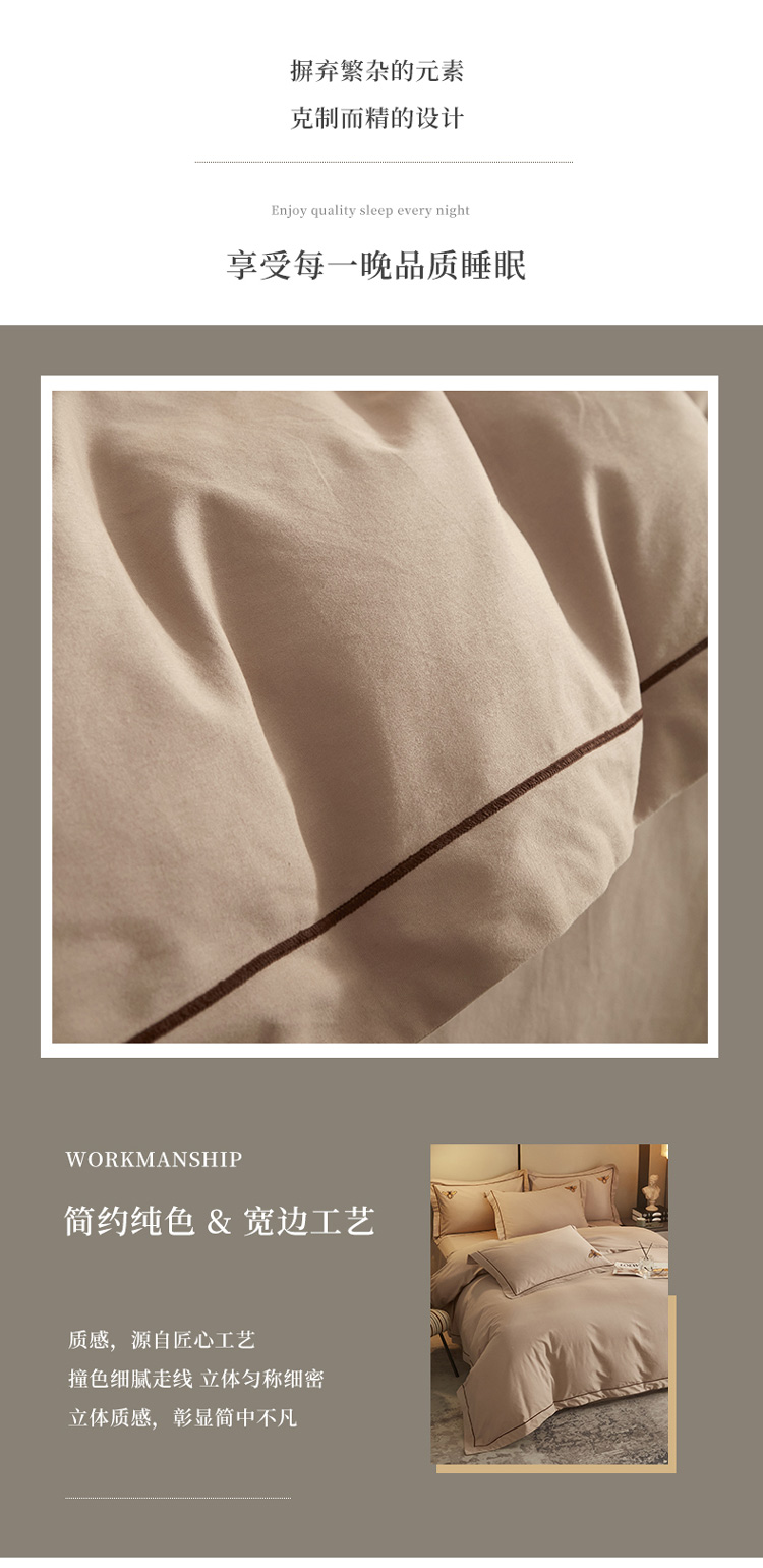 商品名称:启航家居2025新款全棉磨毛宽边刺绣四件套英伦潮派系列 英伦潮派-奶咖色