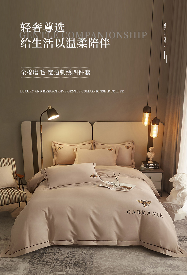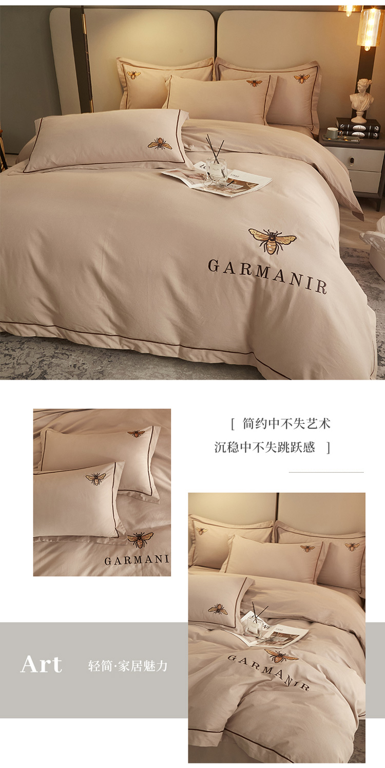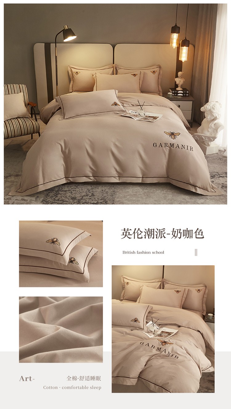 启航家居2025新款全棉磨毛宽边刺绣四件套英伦潮派系列 英伦潮派-奶咖色