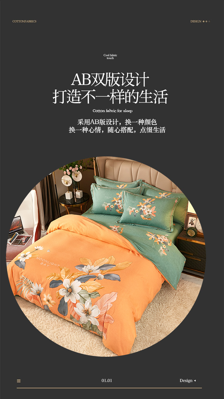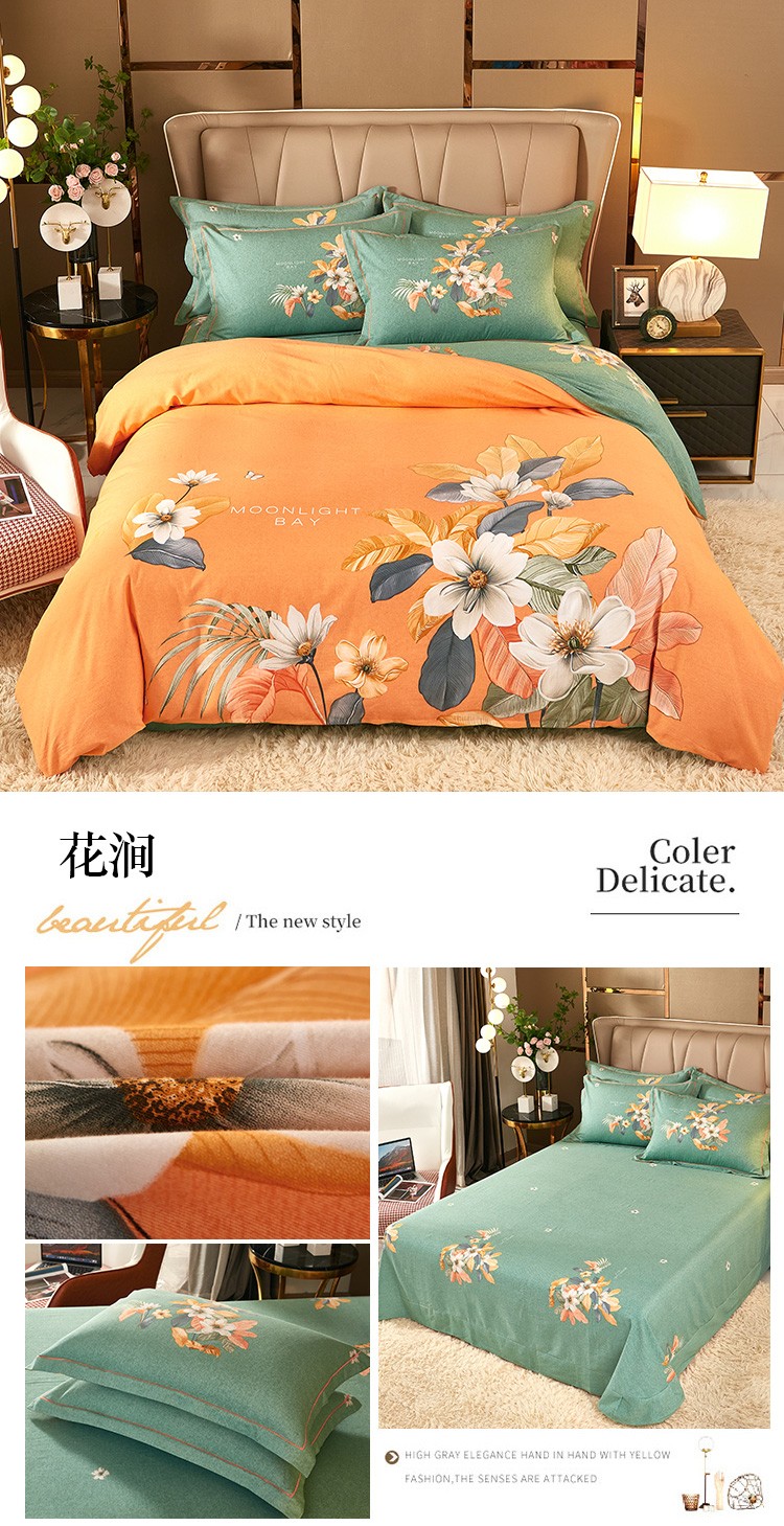 雲归梦 2022年新款全棉AB版加厚磨毛大版四件套 花涧
