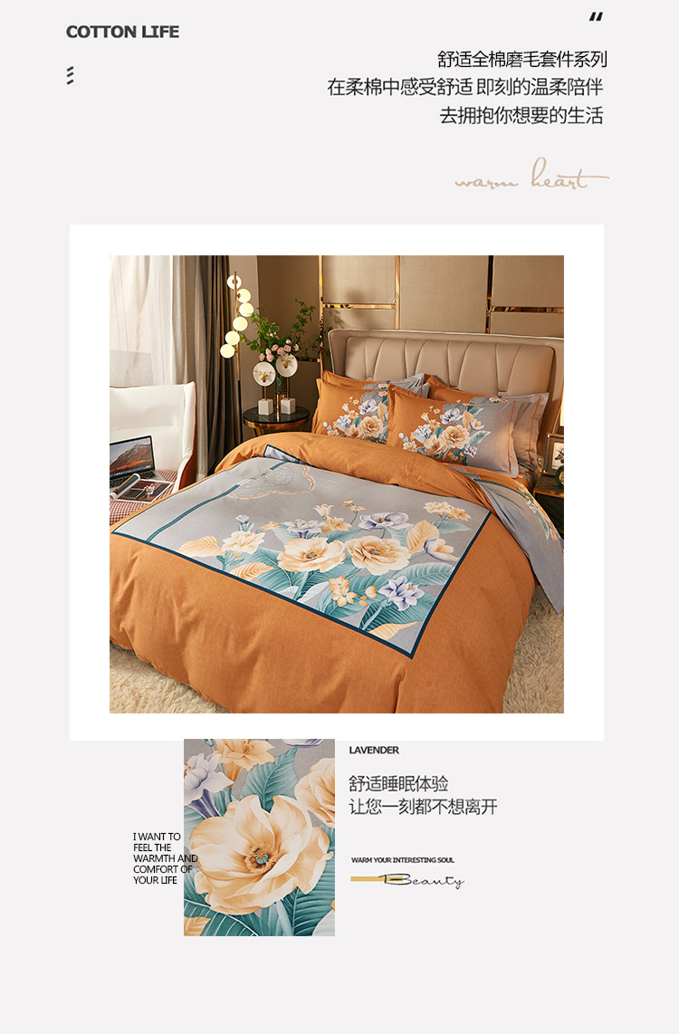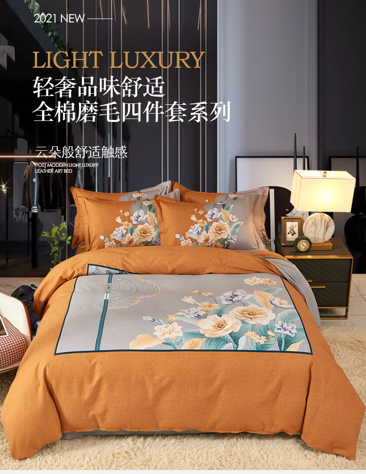 (总)雲归梦 2021新款全棉生态磨毛刺绣四件套,慕思-橙色,慕思-粉紫,慕思-灰,慕思-米黄,慕思-青绿,慕思-天蓝