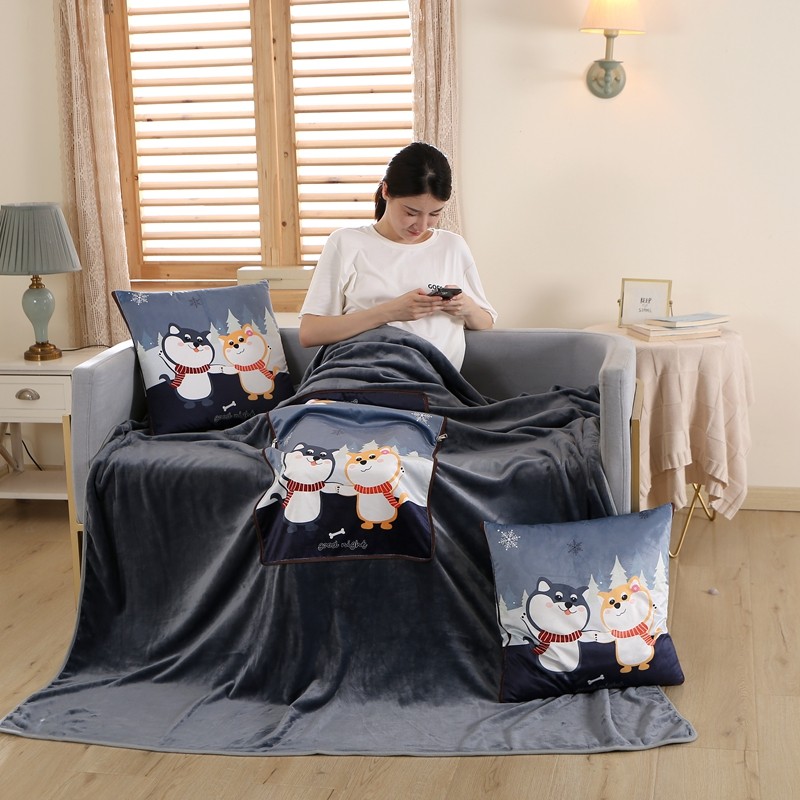 素玖抱枕被 2023新款外面水晶绒里面灰色法兰绒毛毯抱枕毯 爱不释手