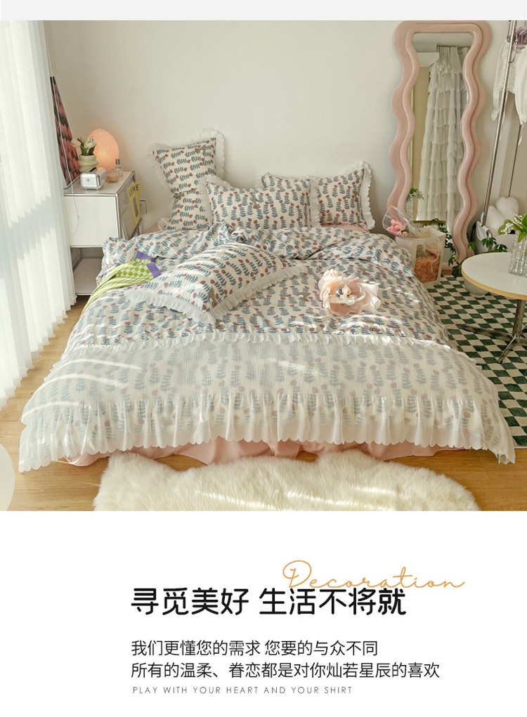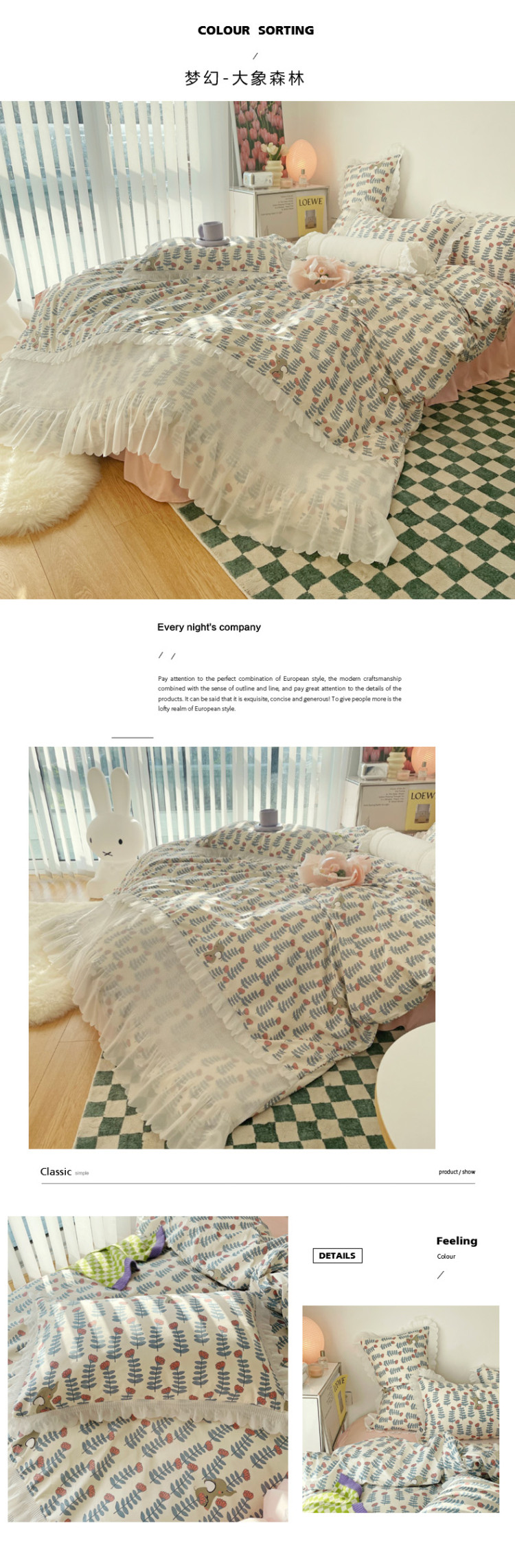 花伞2022新韩版双层蕾丝花边少女锦棉四件套 梦幻-大象森林