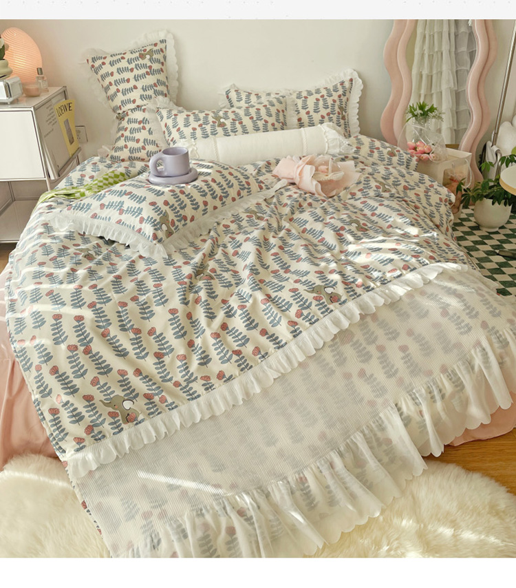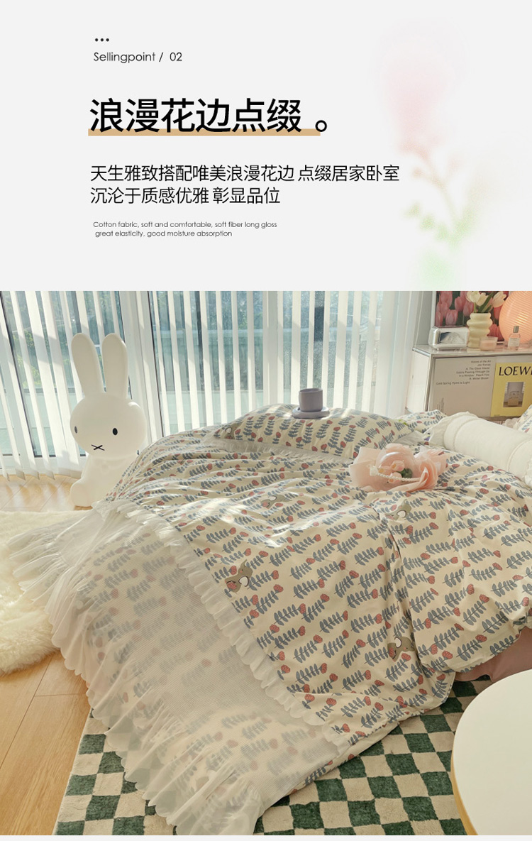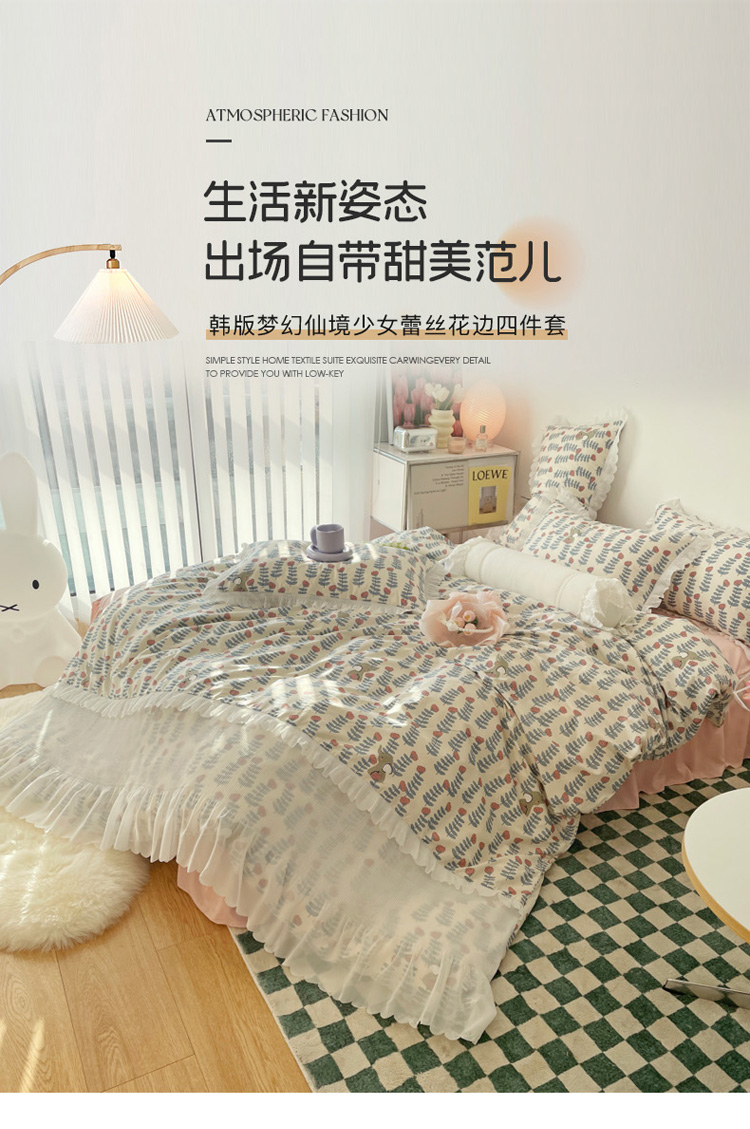 (总)花伞家居 2025新款A类韩系蕾丝花边云感木棉双层纱四件套(提供买家秀),韩系彩色郁金香,韩系爱洛,韩系春沐,韩系繁花,韩系锦朵,韩系快乐小猫,韩系热恋城堡,韩系童年蝴蝶,韩系新气场