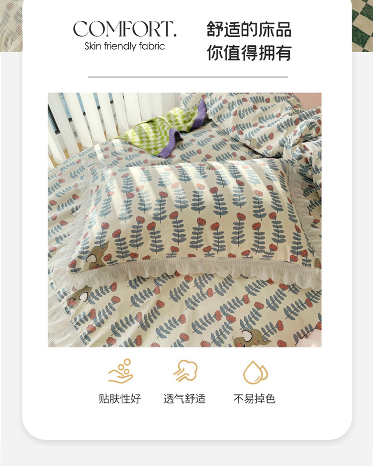 商品名称:花伞2022新韩版双层蕾丝花边少女锦棉四件套 梦幻-大象森林