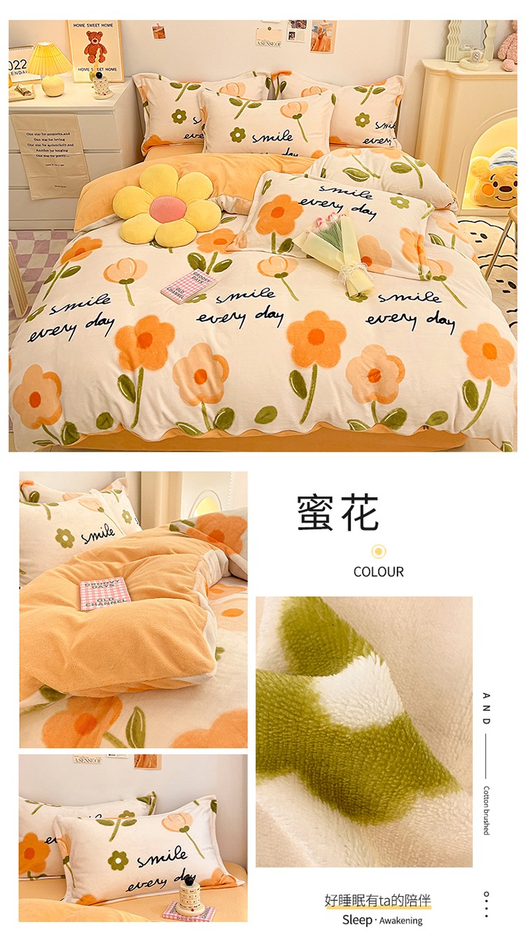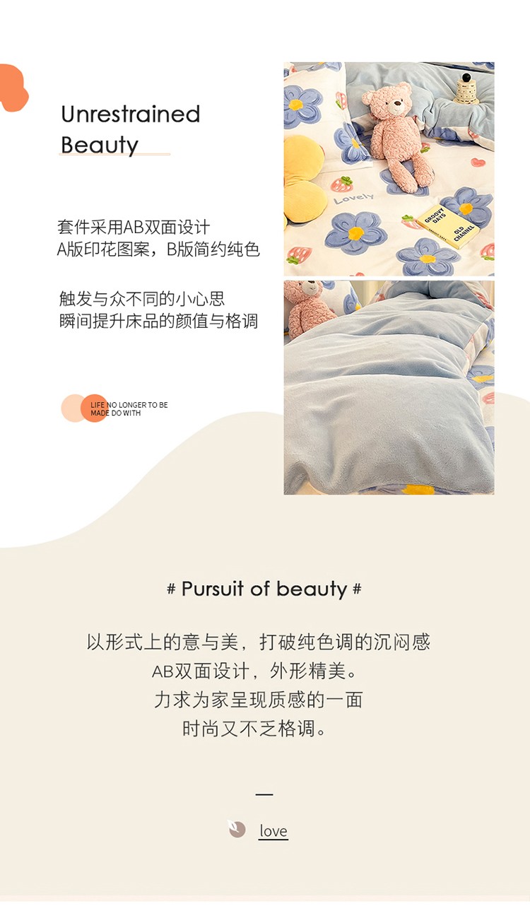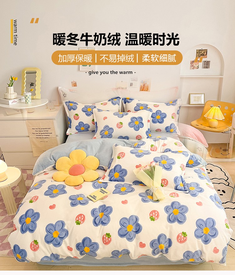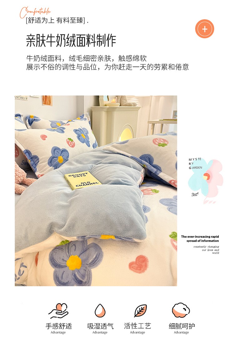 总 川悦生活 2022直播供货高克重小清新牛奶绒四件套
