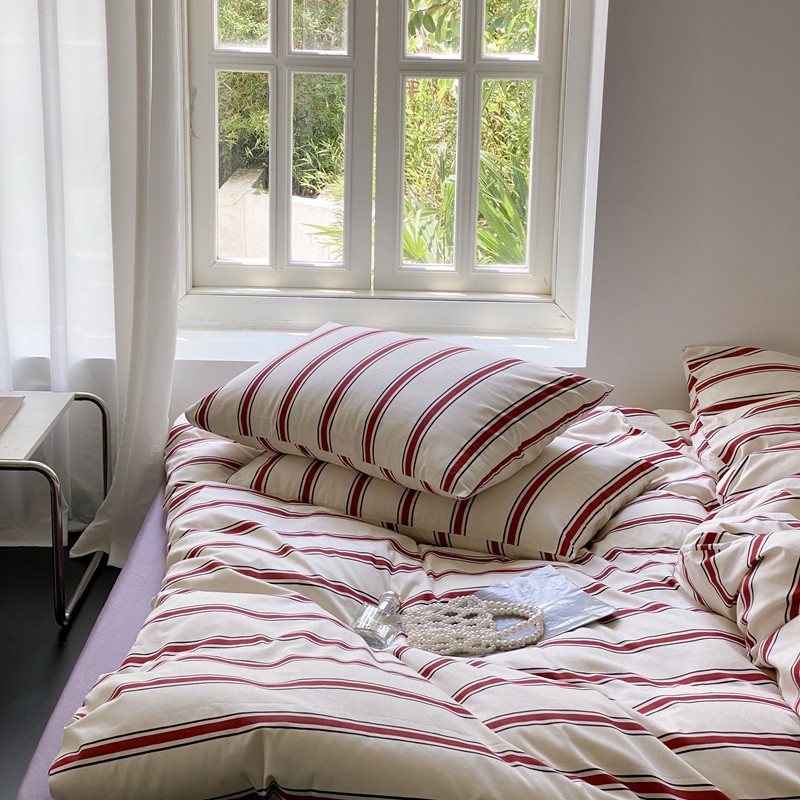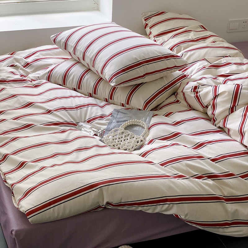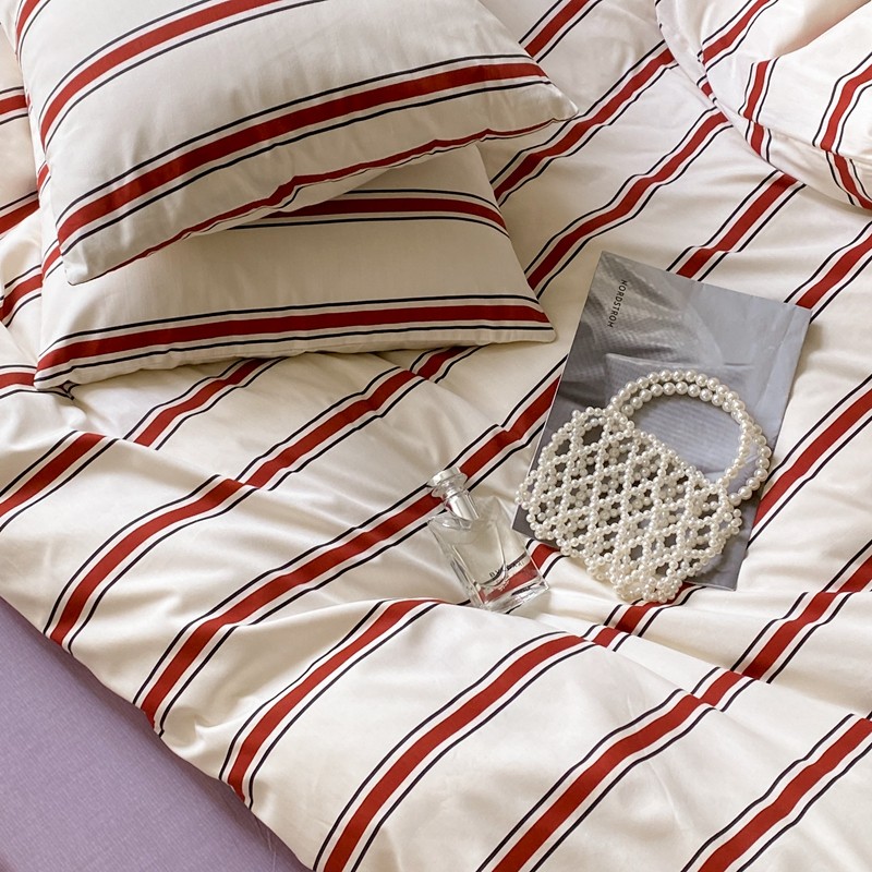 昔可2022新款全棉四件套新款影棚图 红竖条