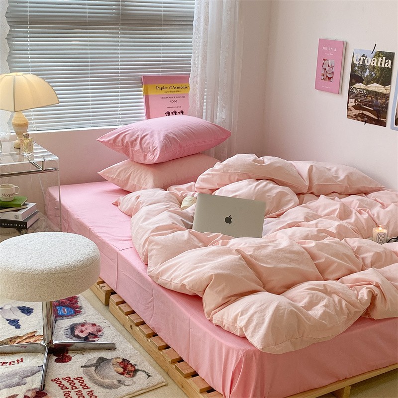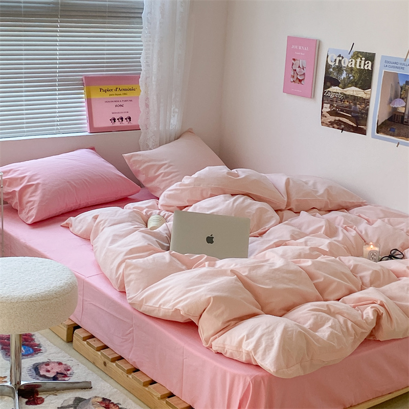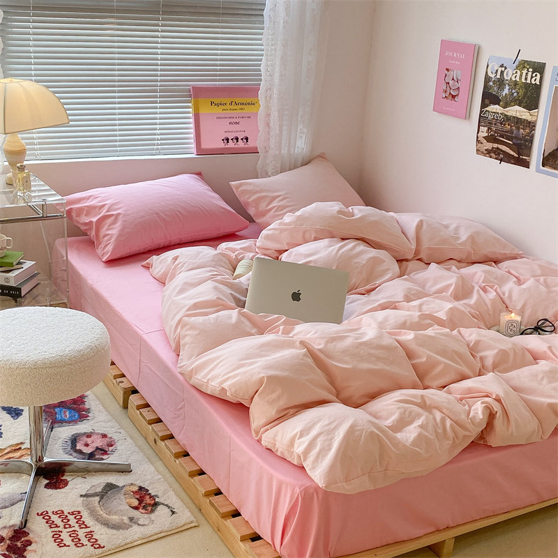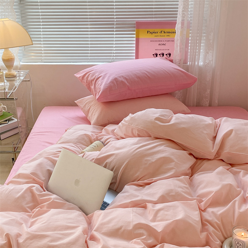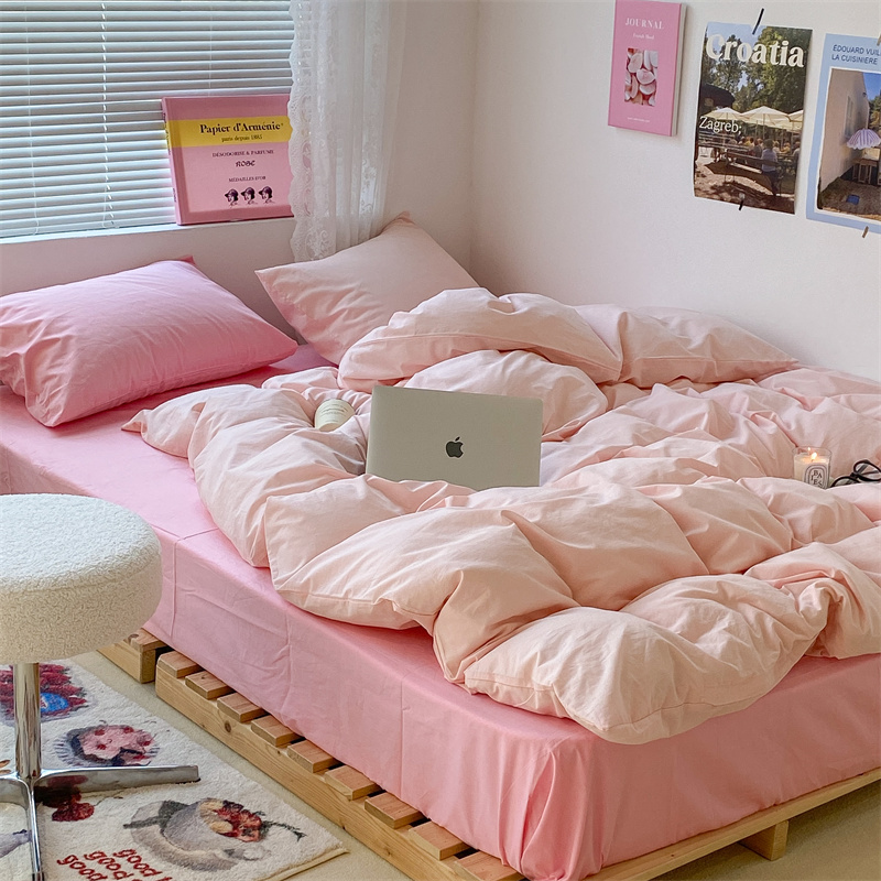 昔可 2022新款40支13372全棉水洗棉混搭四件套 缪斯粉