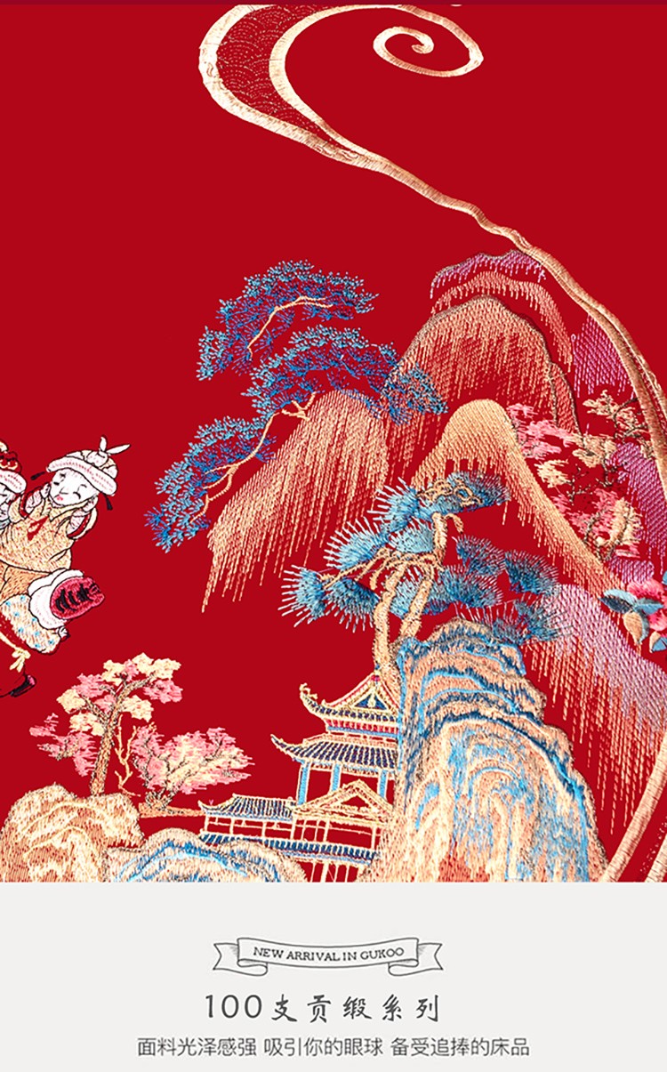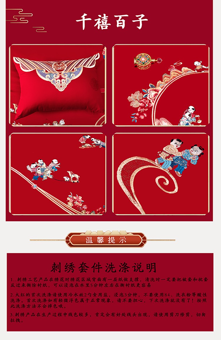 (总)柏拉图 2023新款100s贡缎提花长绒棉轻奢简约婚庆四件套,百子多福,金龙金凤,锦绣良缘,欧式风情,双喜临门,喜气洋洋,百子登科