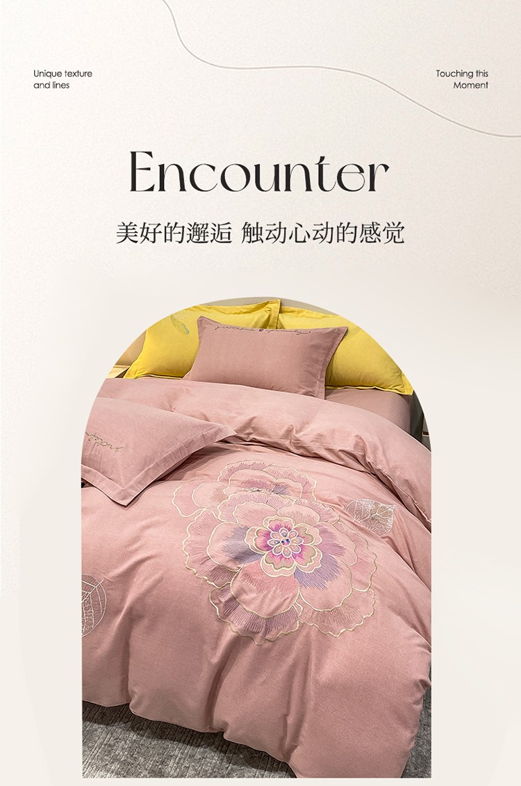 涵宸 2022新款全棉铂金磨毛刺绣四件套-月息系列 月息-蜜桃玉
