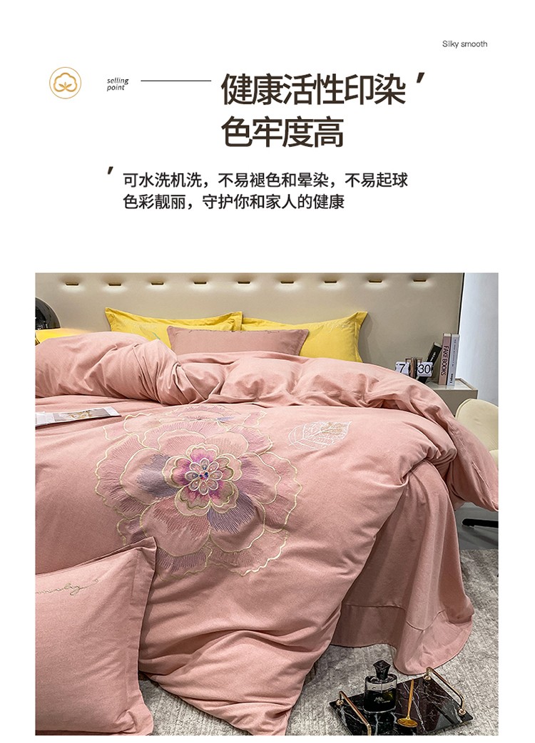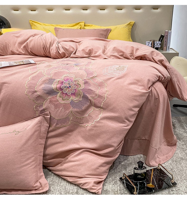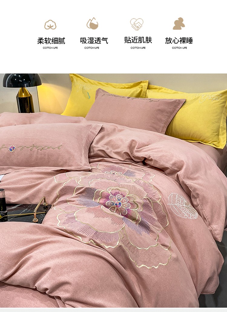 商品名称:涵宸 2022新款全棉铂金磨毛刺绣四件套-月息系列 月息-蜜桃玉