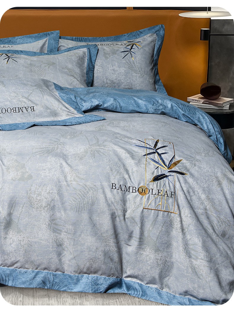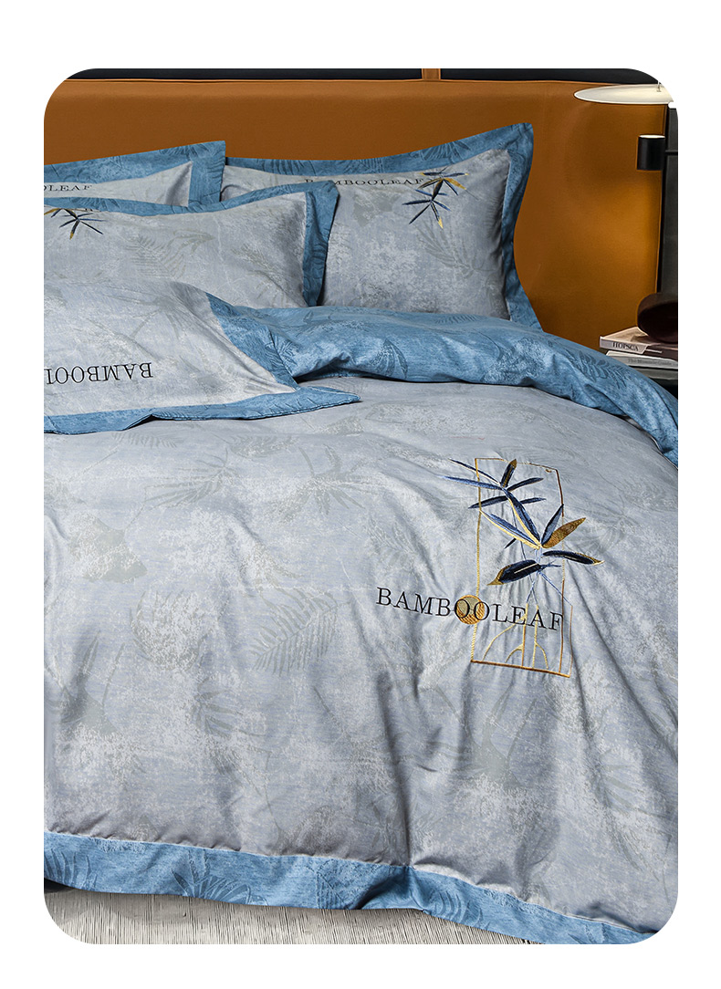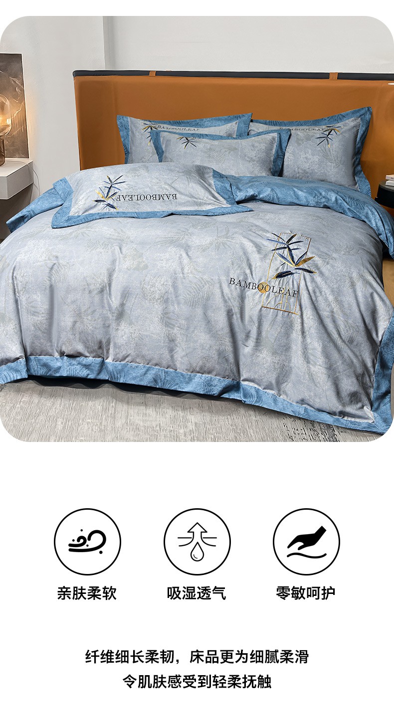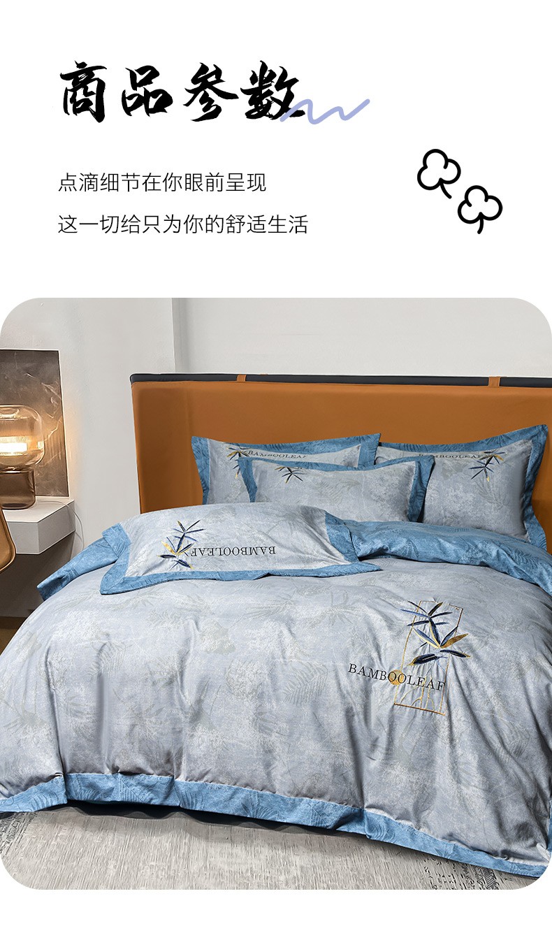 (总)梦柏家纺 2022新款亲肤雅棉绣花四件套,茶色,魔力灰,南瓜色,珊瑚绿,深海兰,杏色