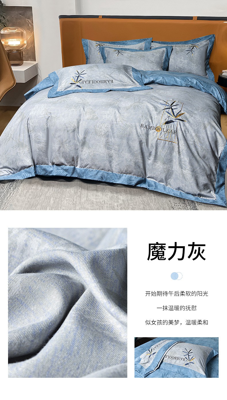 梦柏家纺 2022新款亲肤雅棉绣花四件套 魔力灰
