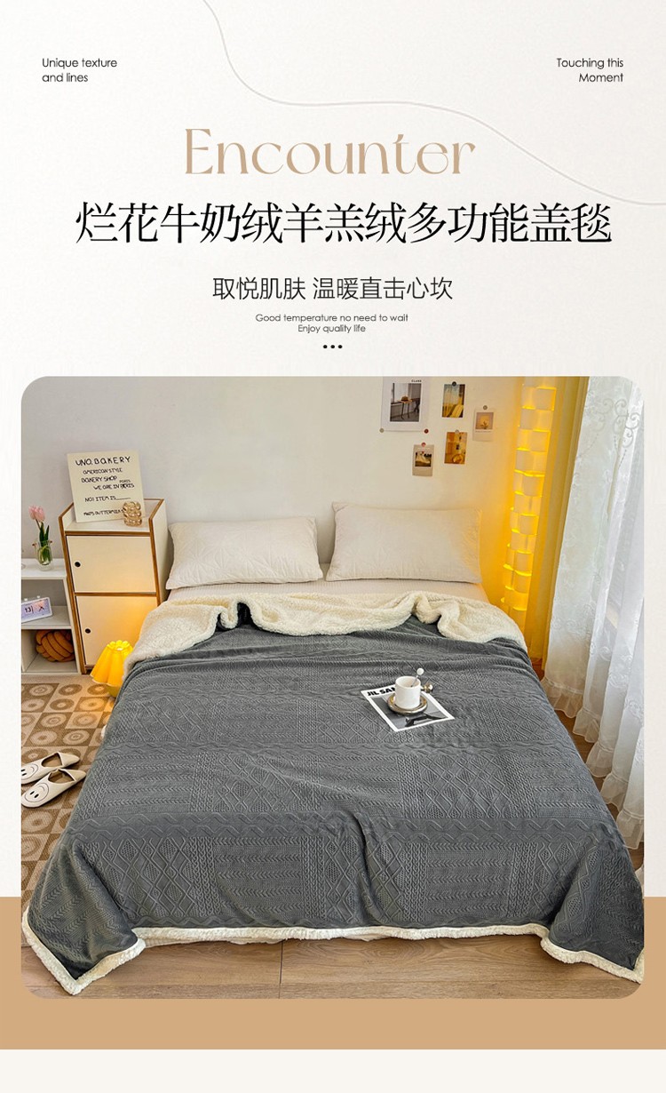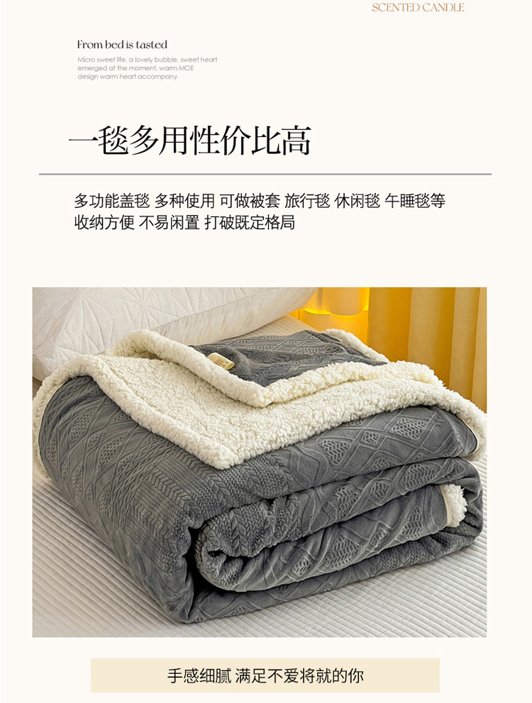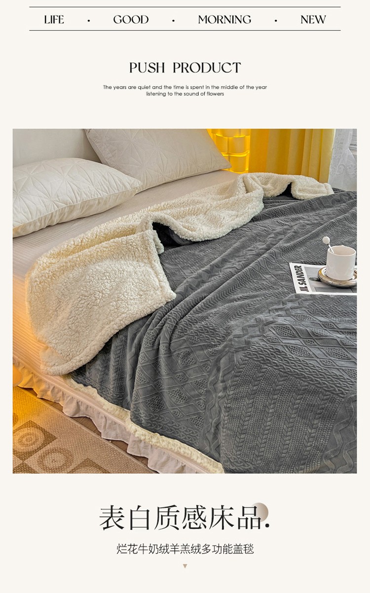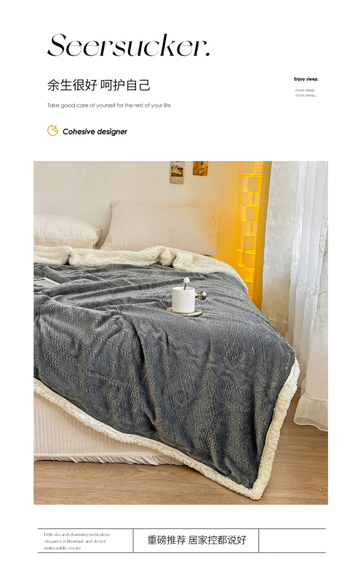 商品名称:寐居 2022新款烂花牛奶绒羊羔绒多功能毛毯 挪威-深灰