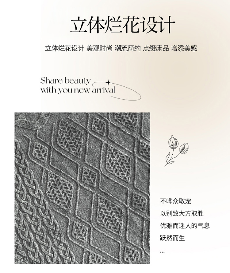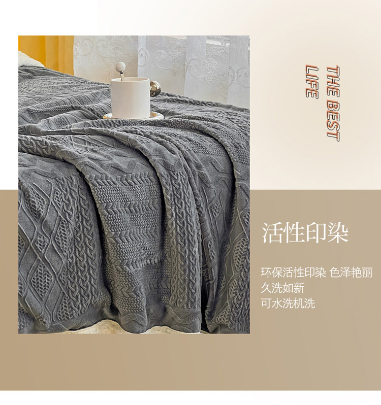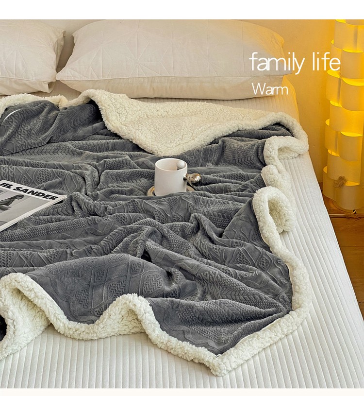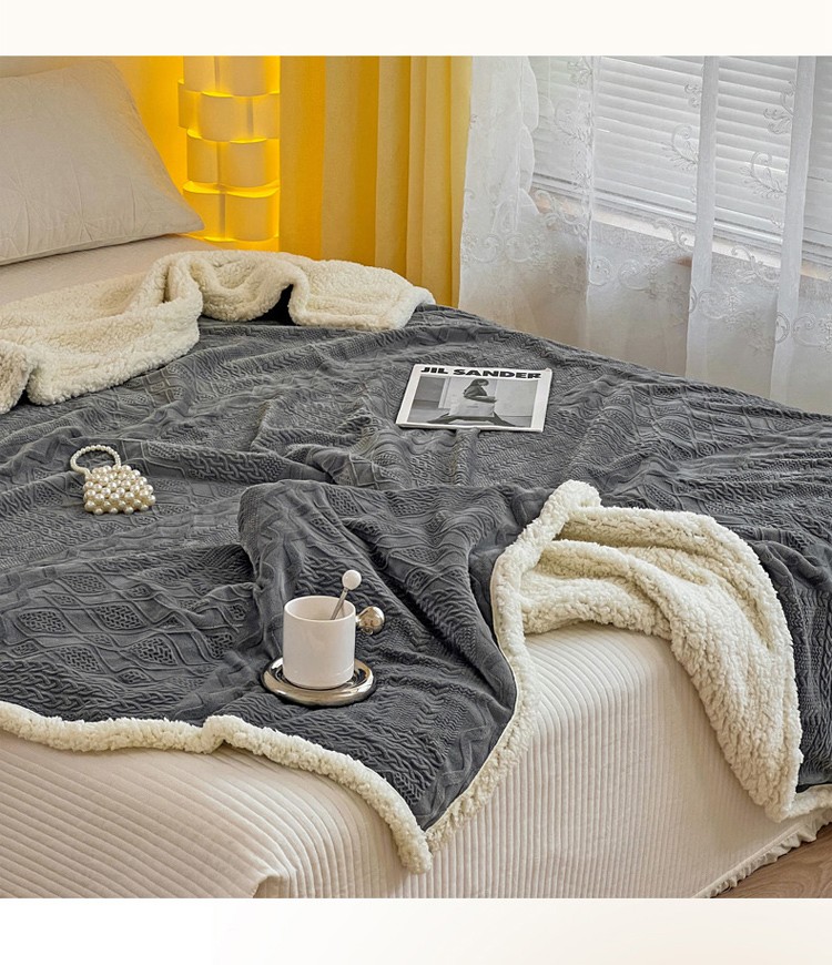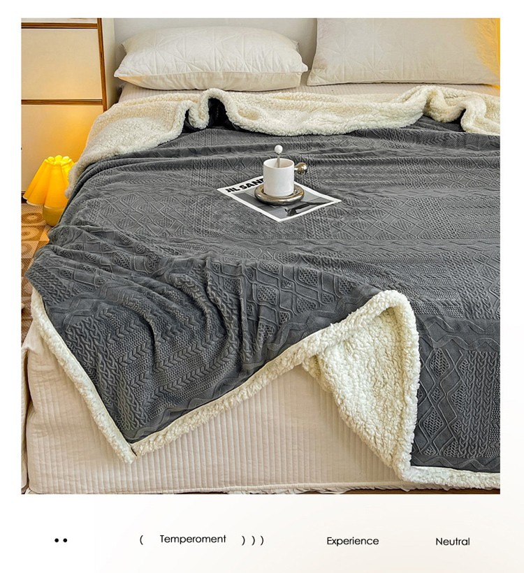 商品名称:寐居 2022新款烂花牛奶绒羊羔绒多功能毛毯 挪威-深灰