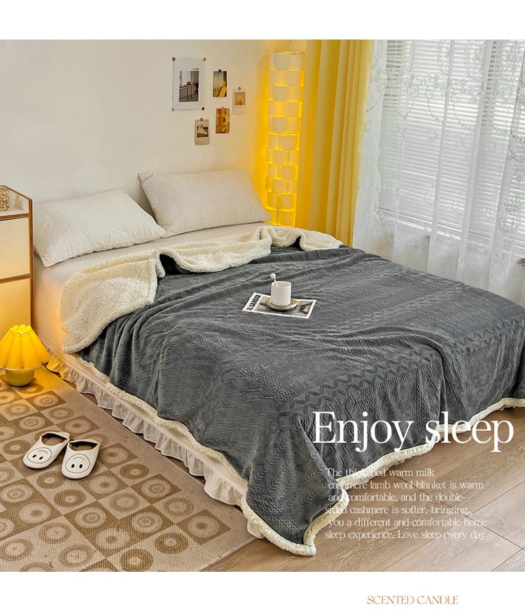 寐居 2022新款烂花牛奶绒羊羔绒多功能毛毯 挪威-深灰