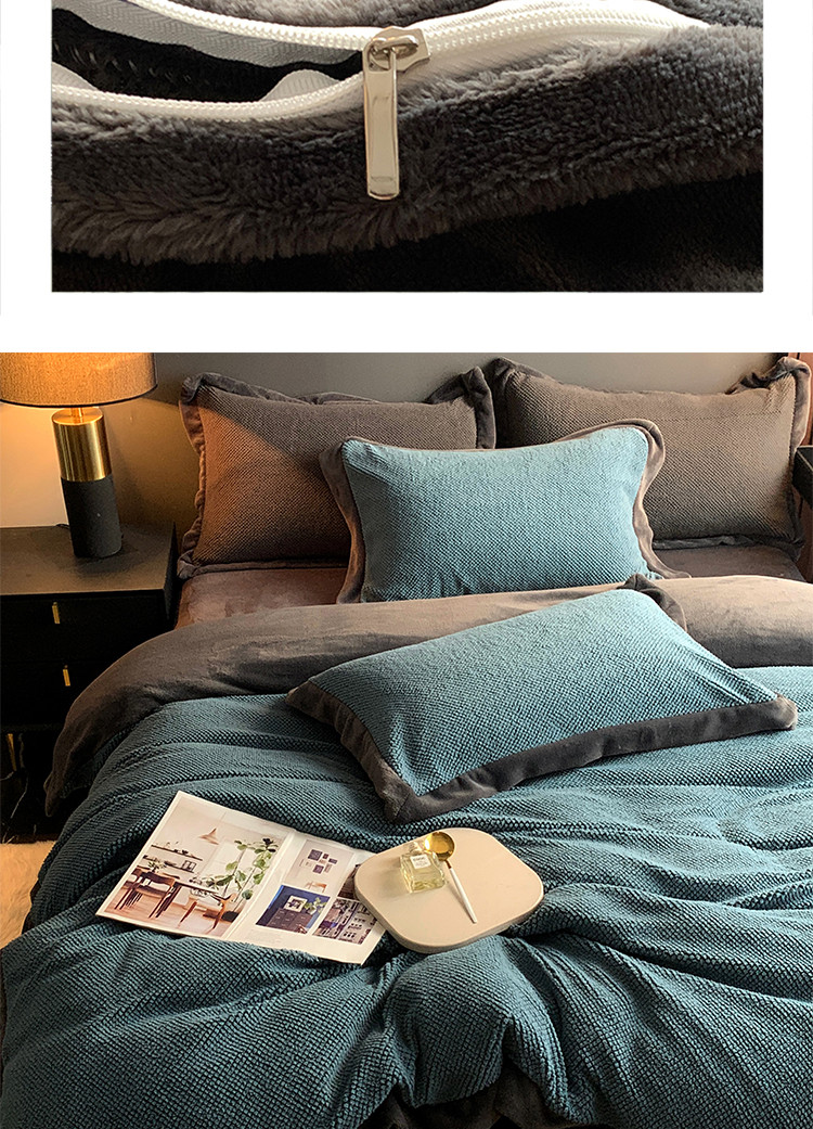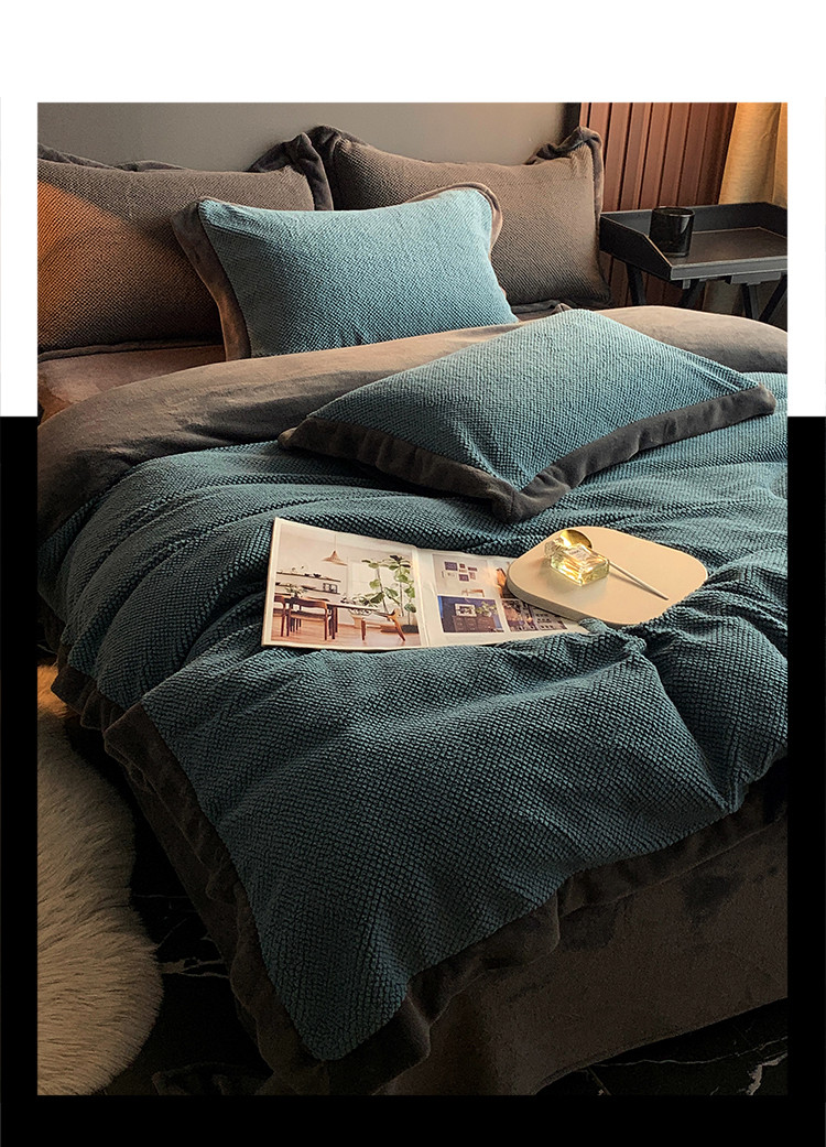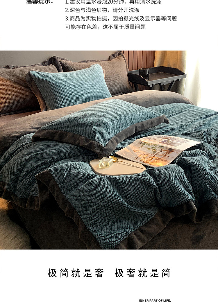 (总)网客家纺 2025新款羊毛绒牛奶绒夹棉床盖四件套,豹点-深灰,简格-黑色,简格-咖色,空间-红色,泥点-灰色,泥点-咖色,维奥-灰色,斜格-灰色,斜格-墨绿