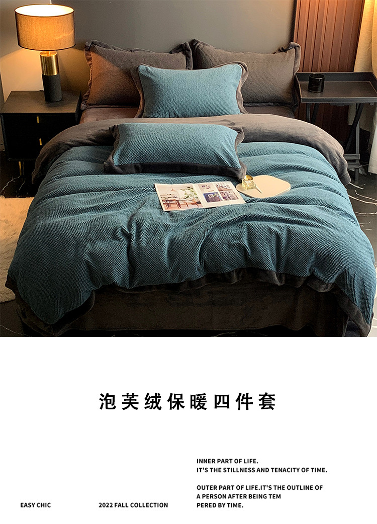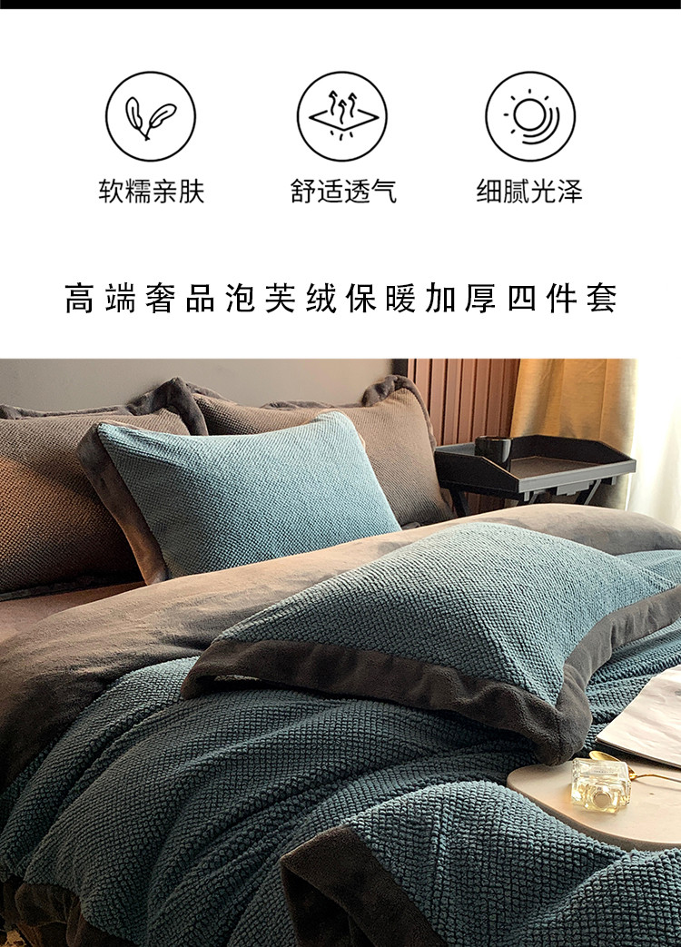 网客 2024高端奢品泡芙绒四件套 海军蓝