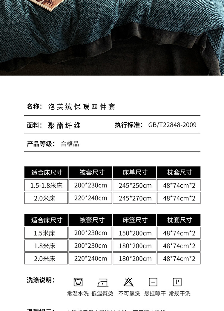 商品名称:网客 2024高端奢品泡芙绒四件套 海军蓝