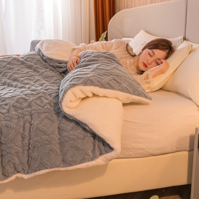 (总)简爱 2025新款法莱绒羊羔绒多功能被套毯,藏青,豆沙,鹅黄,湖蓝,酒红,咖啡,浅绿,深灰,驼色,夕阳红,银灰,玉色