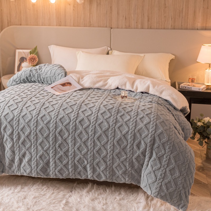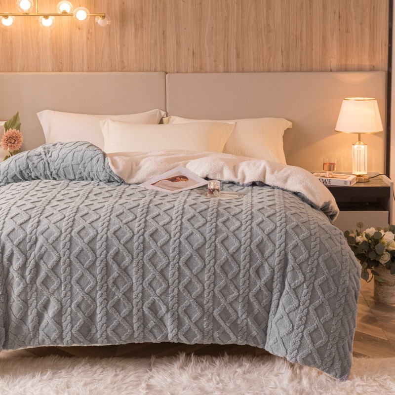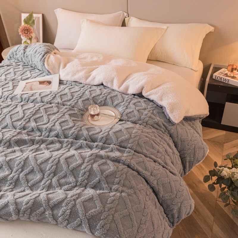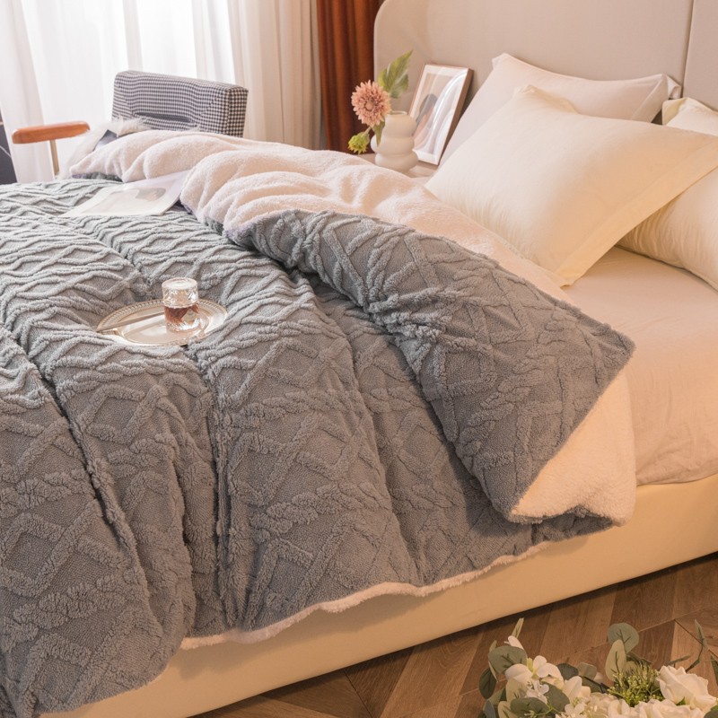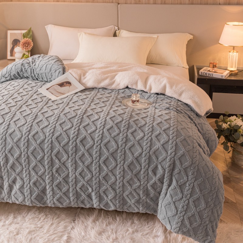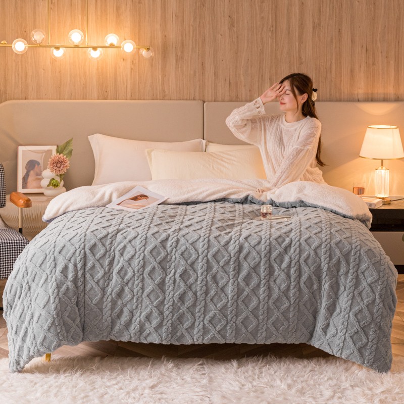 商品名称:简爱-2025舒棉绒羊羔绒单被套多功能毯 菱形茉格-绅士灰
