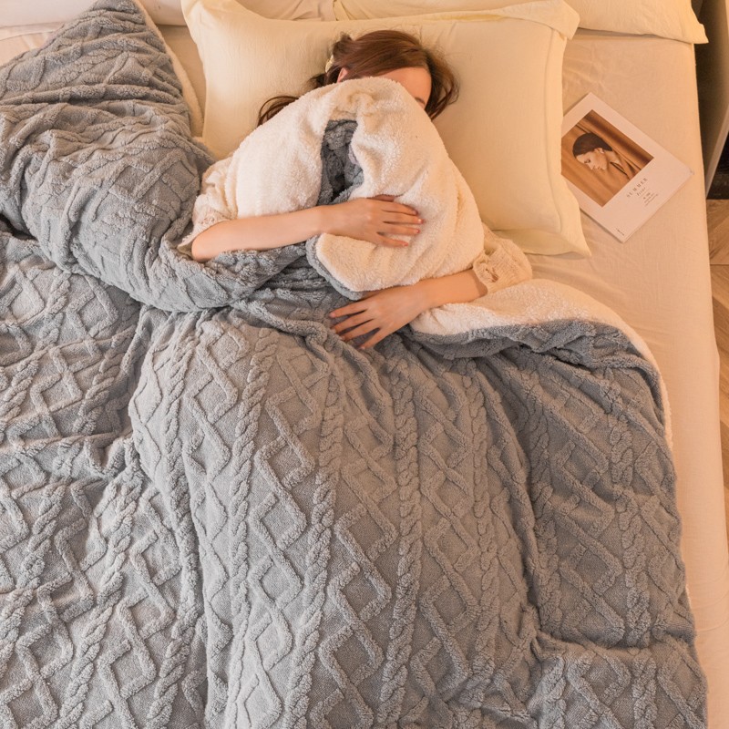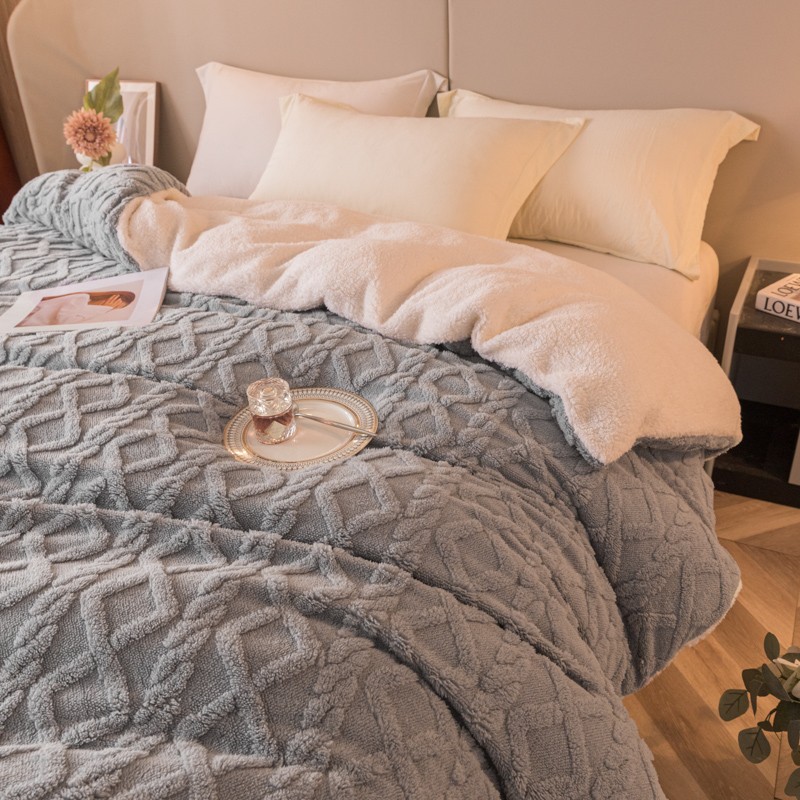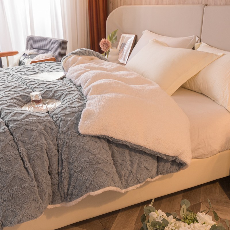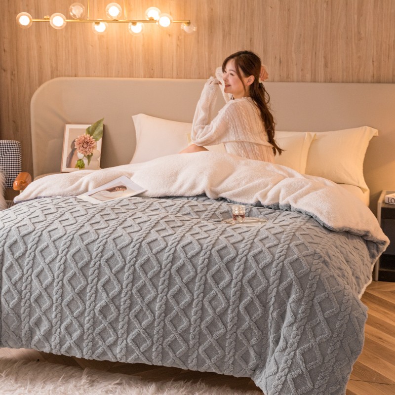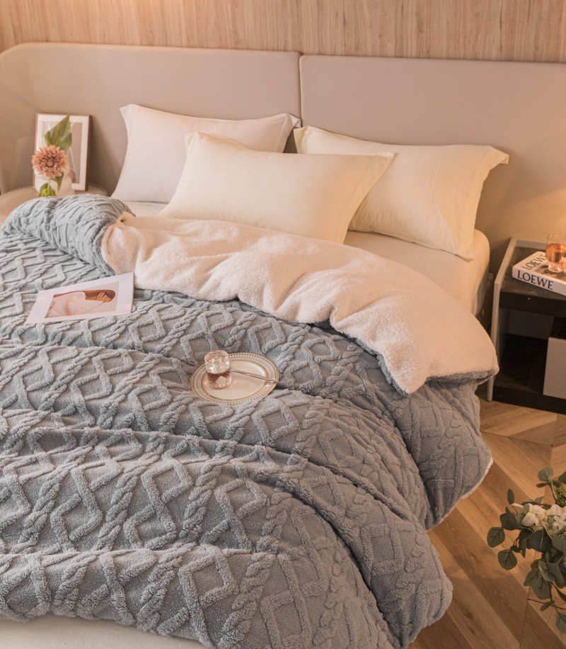 商品名称:简爱-2025舒棉绒羊羔绒单被套多功能毯 菱形茉格-绅士灰
