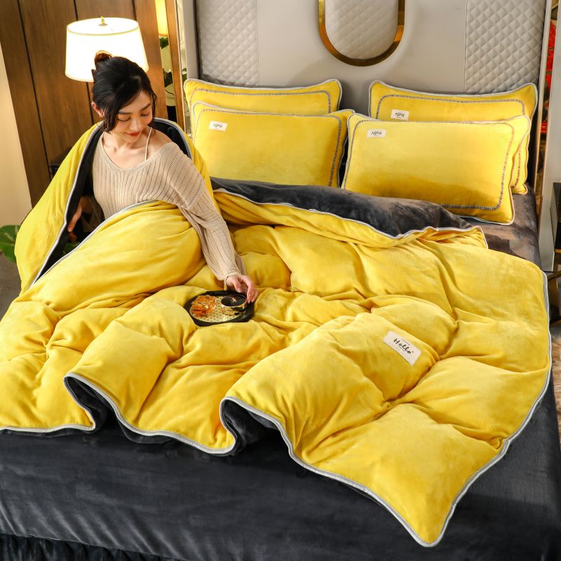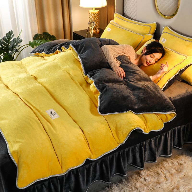 当前位置: 91家纺网 > 商品网购 > 床品套件 > 四件套 > 牛奶绒四件套 > 畅畅家纺 2022新款纯色双拼加厚牛奶绒四件套 柠檬黄拼色2