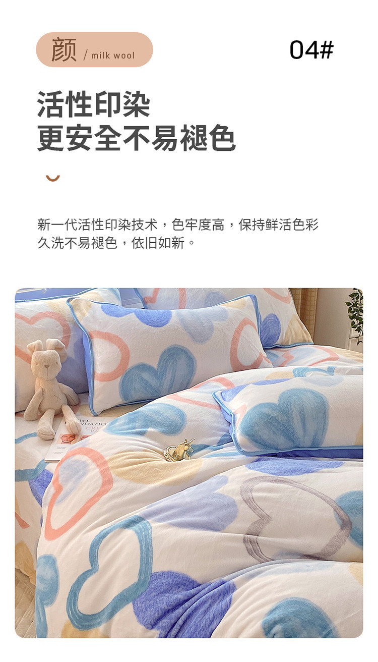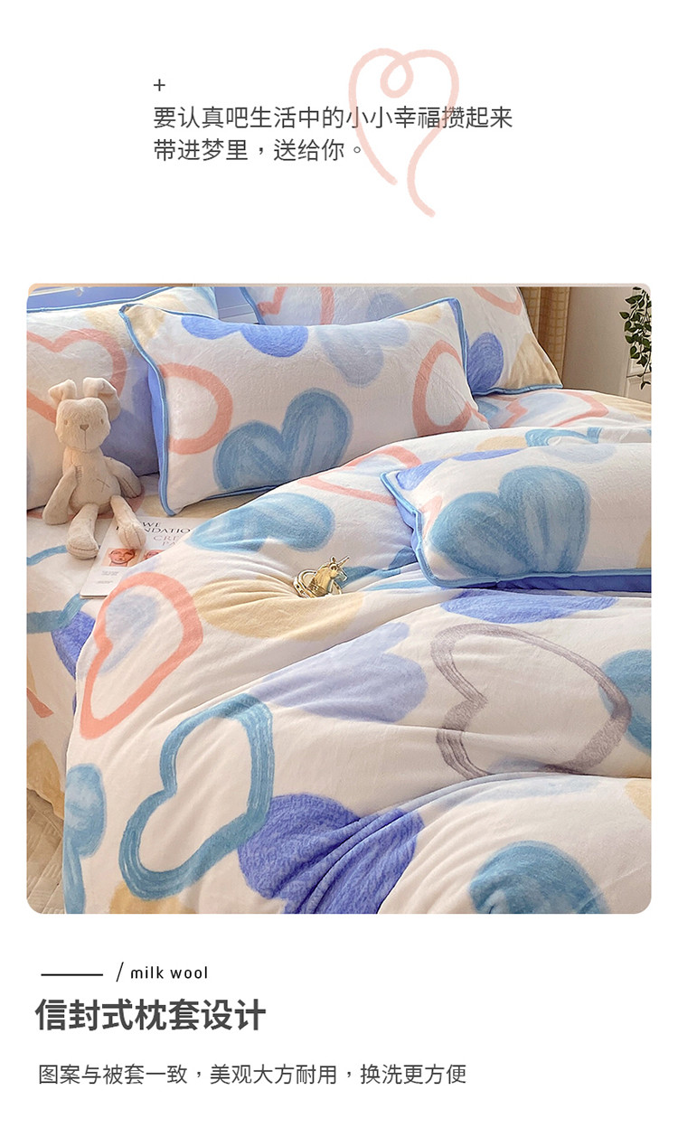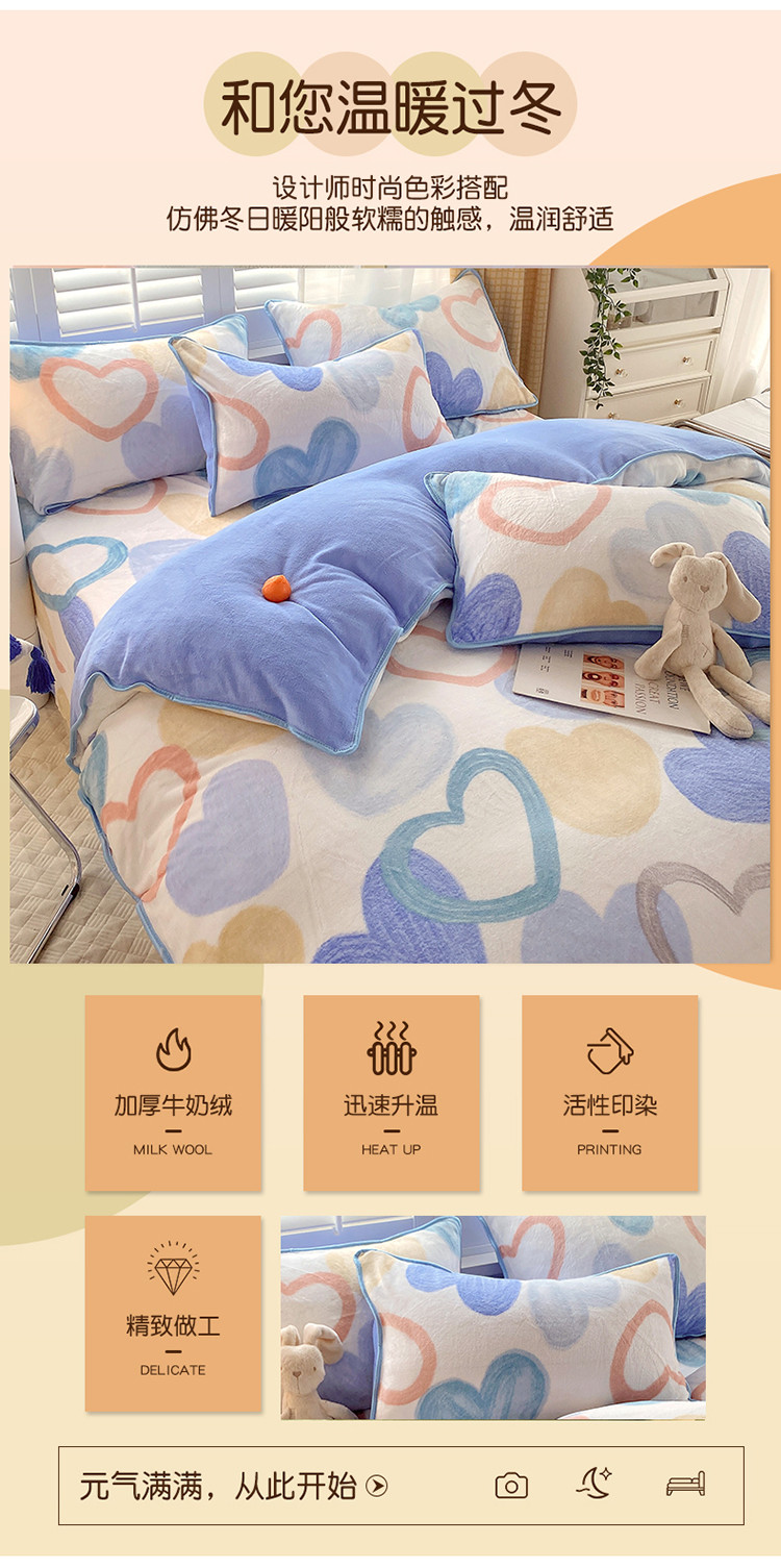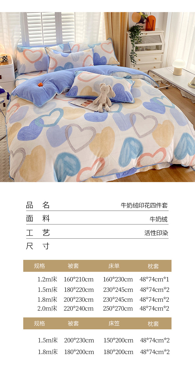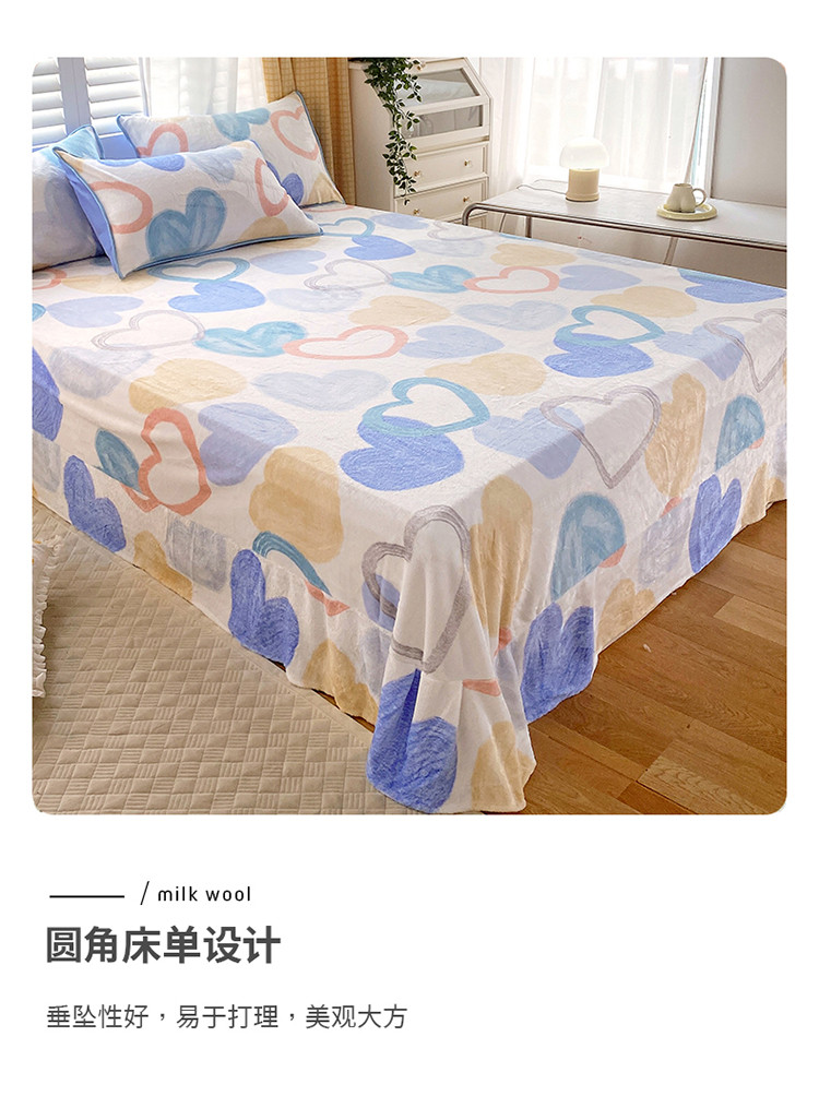 金鑫汇 2022新款牛奶绒四件套系列-单床笠 爱心