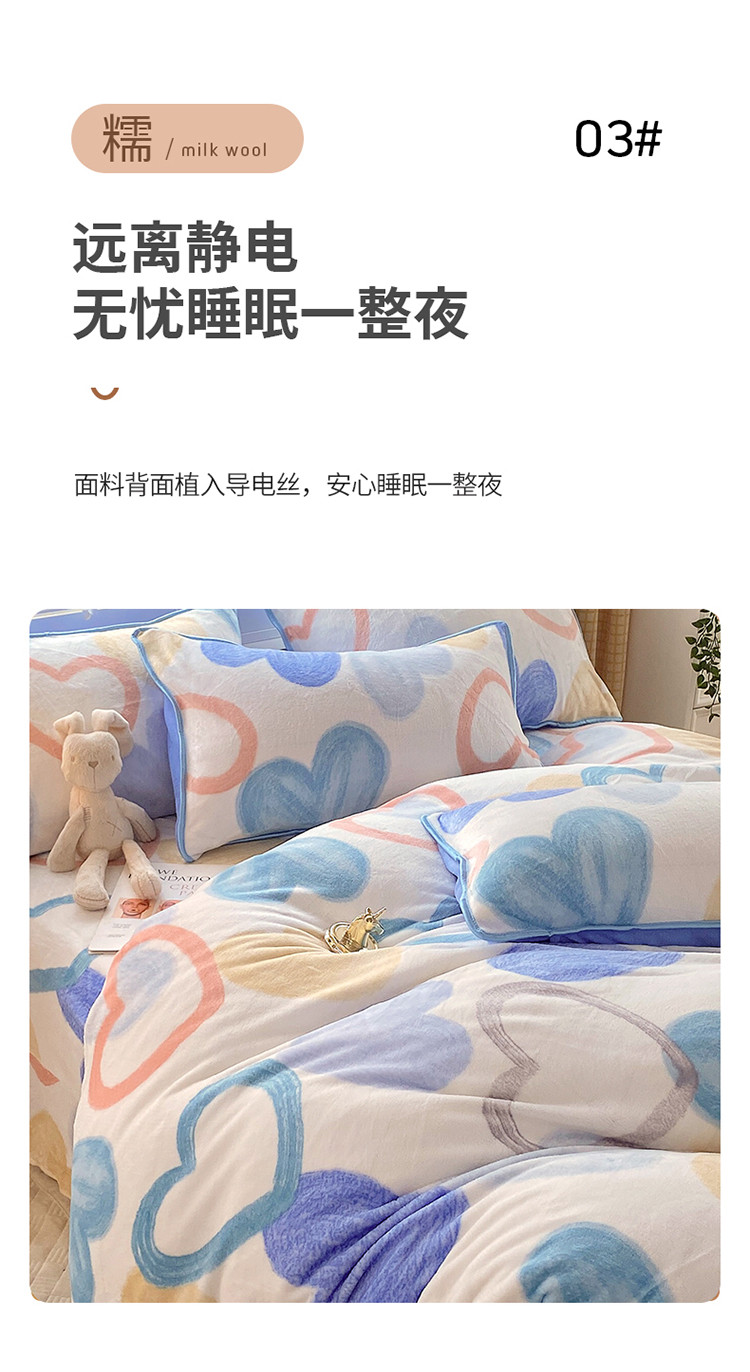 商品名称:金鑫汇 2022新款牛奶绒四件套系列-单床笠 爱心