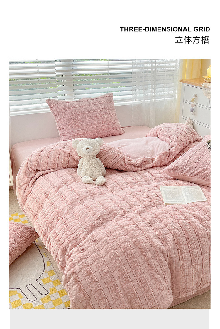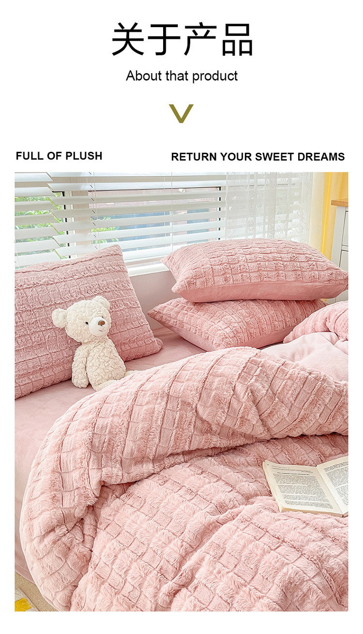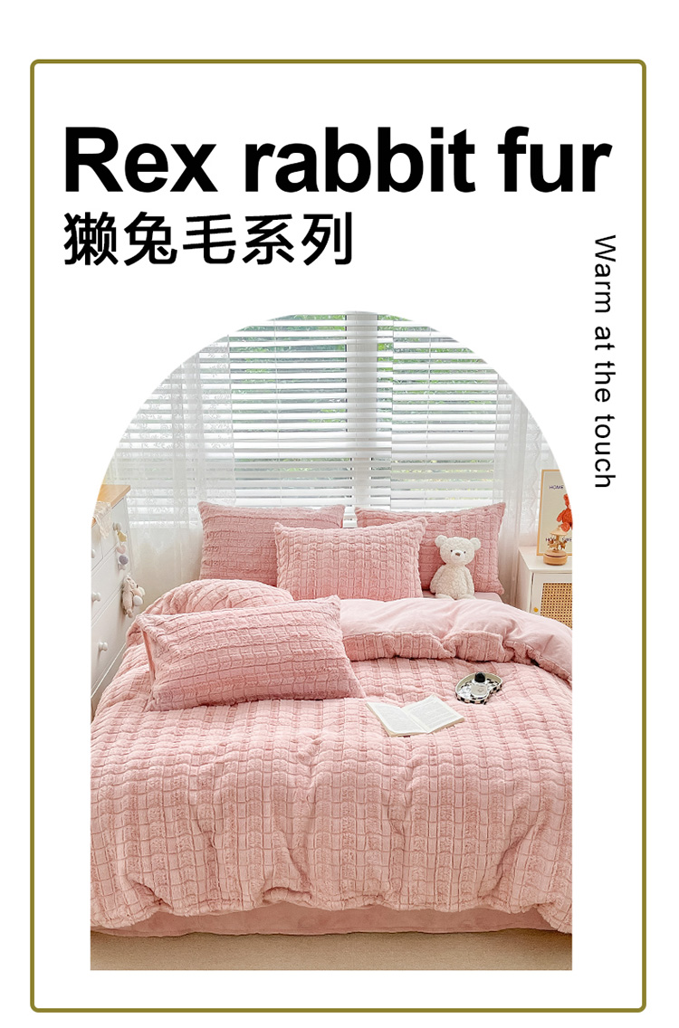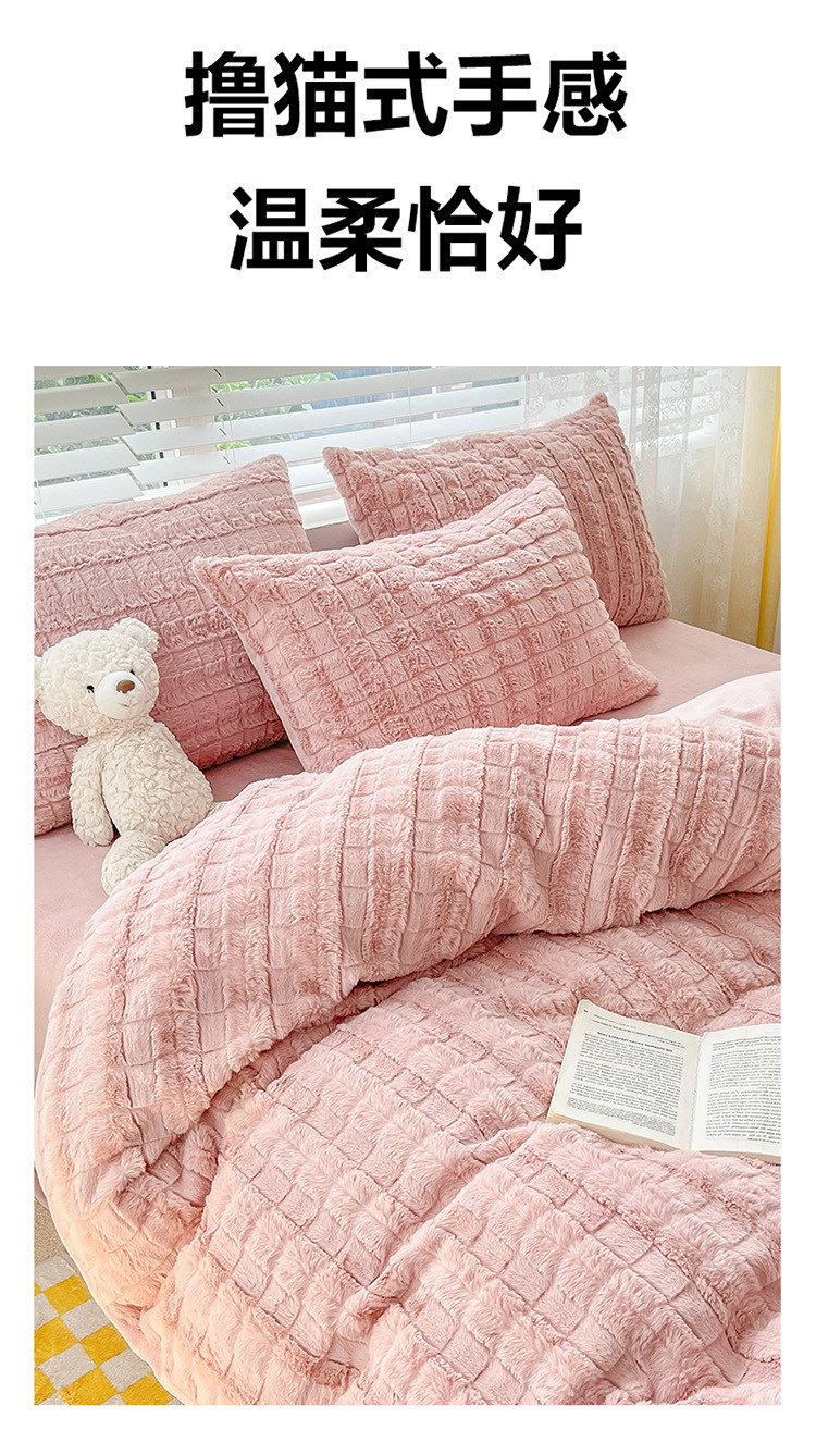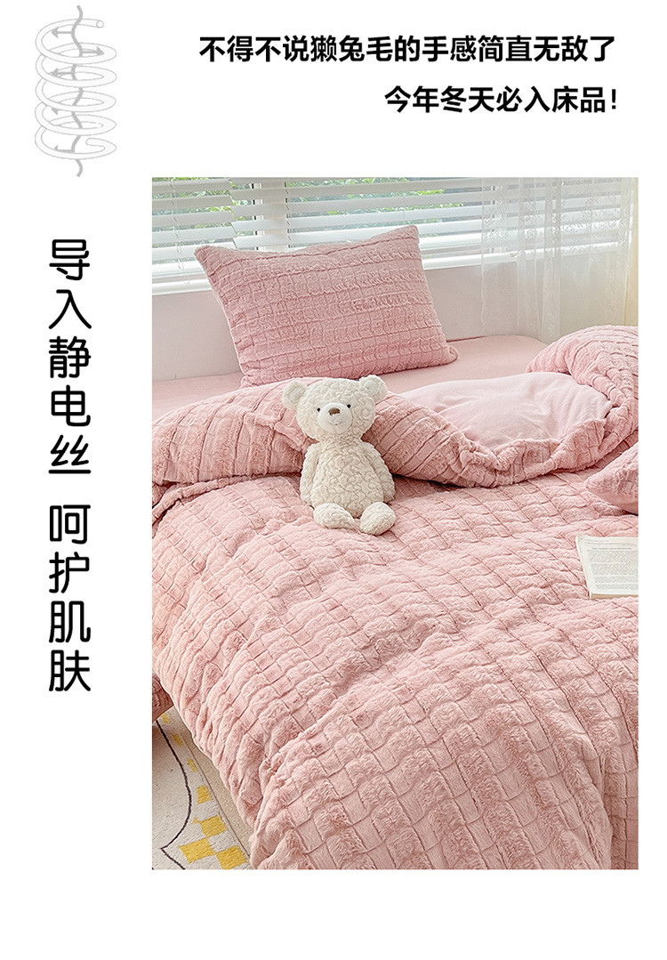 商品名称:静家居 2024獭兔毛冬款四件套 粉色