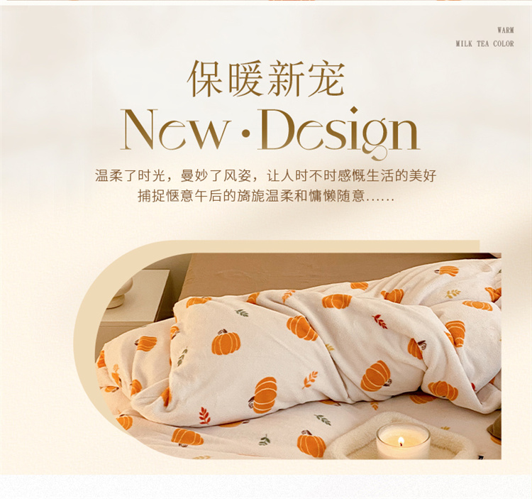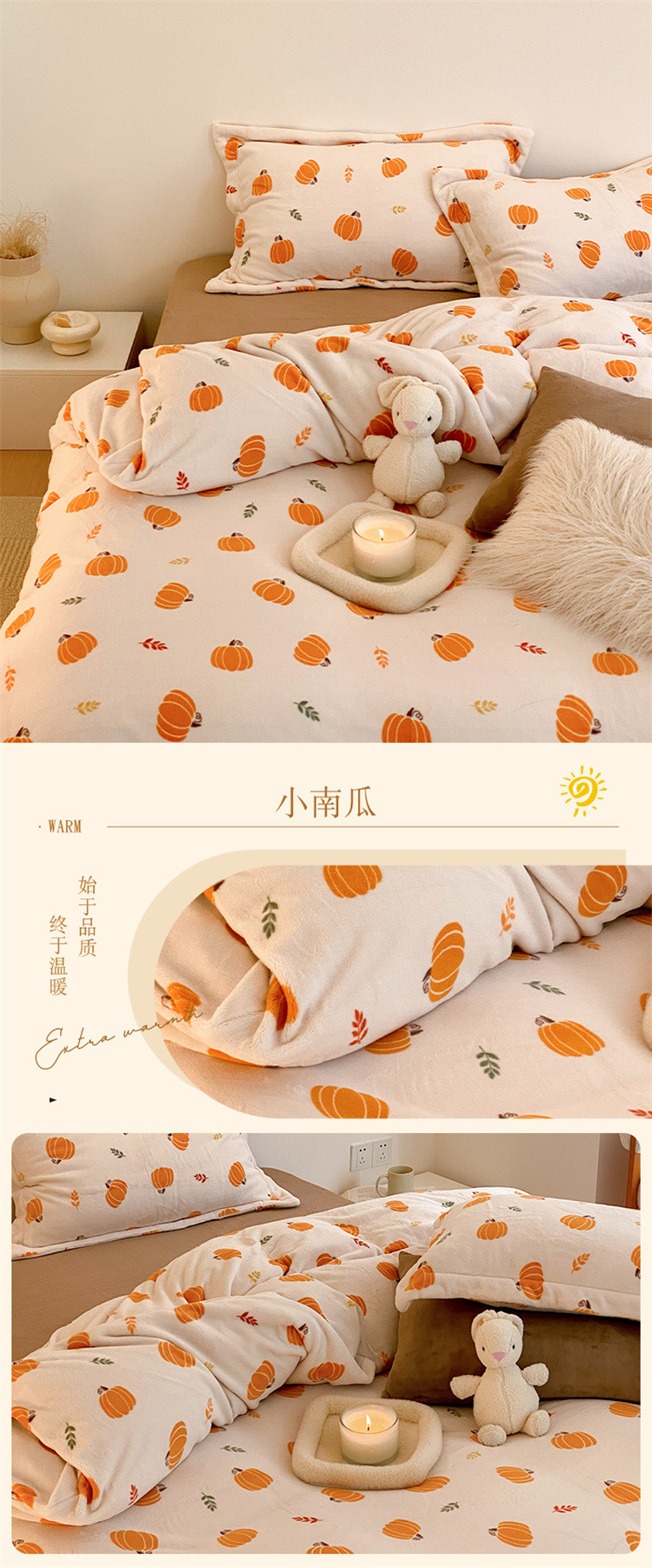 当前位置: 91家纺网 > 商品网购 > 床品套件 > 四件套 > 牛奶绒四件套 > 时光里 2022新款230g正宗全消光印花牛奶绒四件套 小南瓜