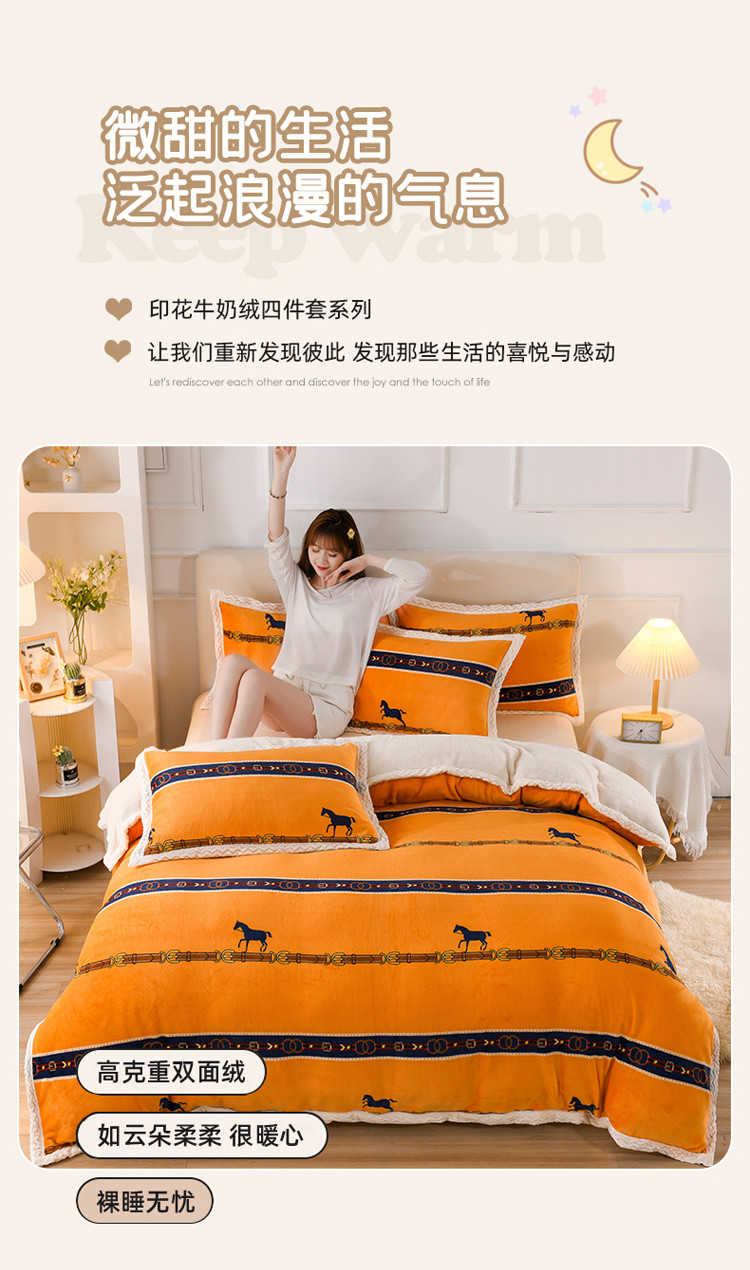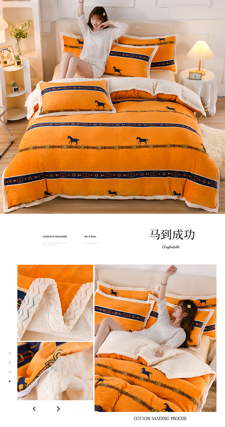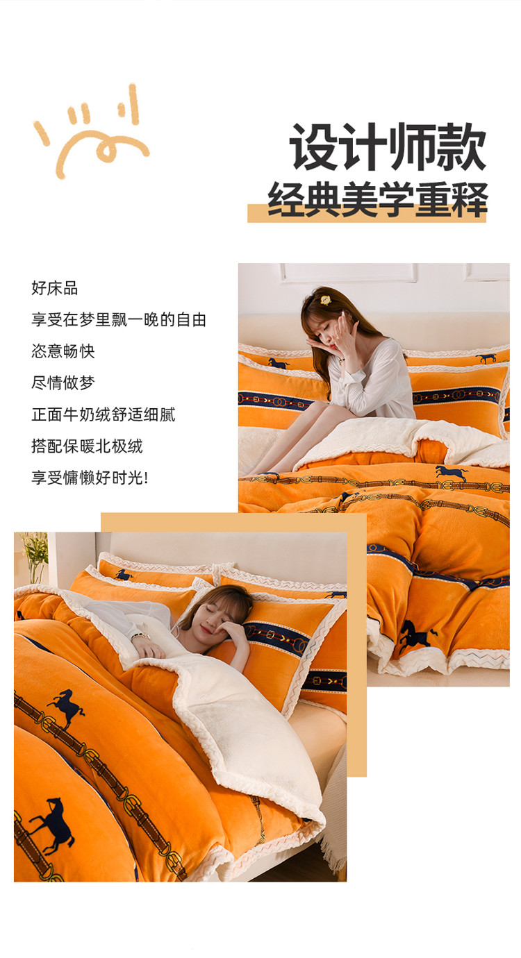 当前位置: 91家纺网 > 商品网购 > 床品套件 > 四件套 > 牛奶绒四件套 > 迷仙巢 2022新款牛奶绒拼北极绒贝贝绒包边四件套 马到成功