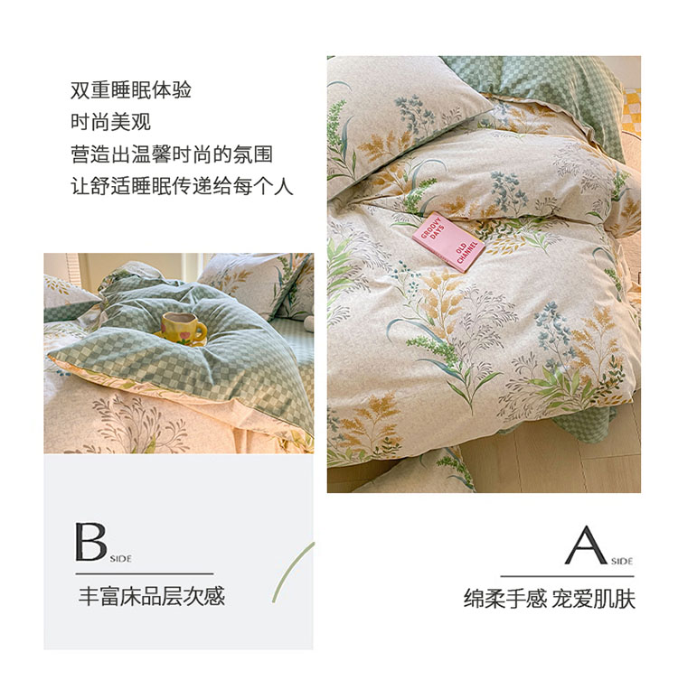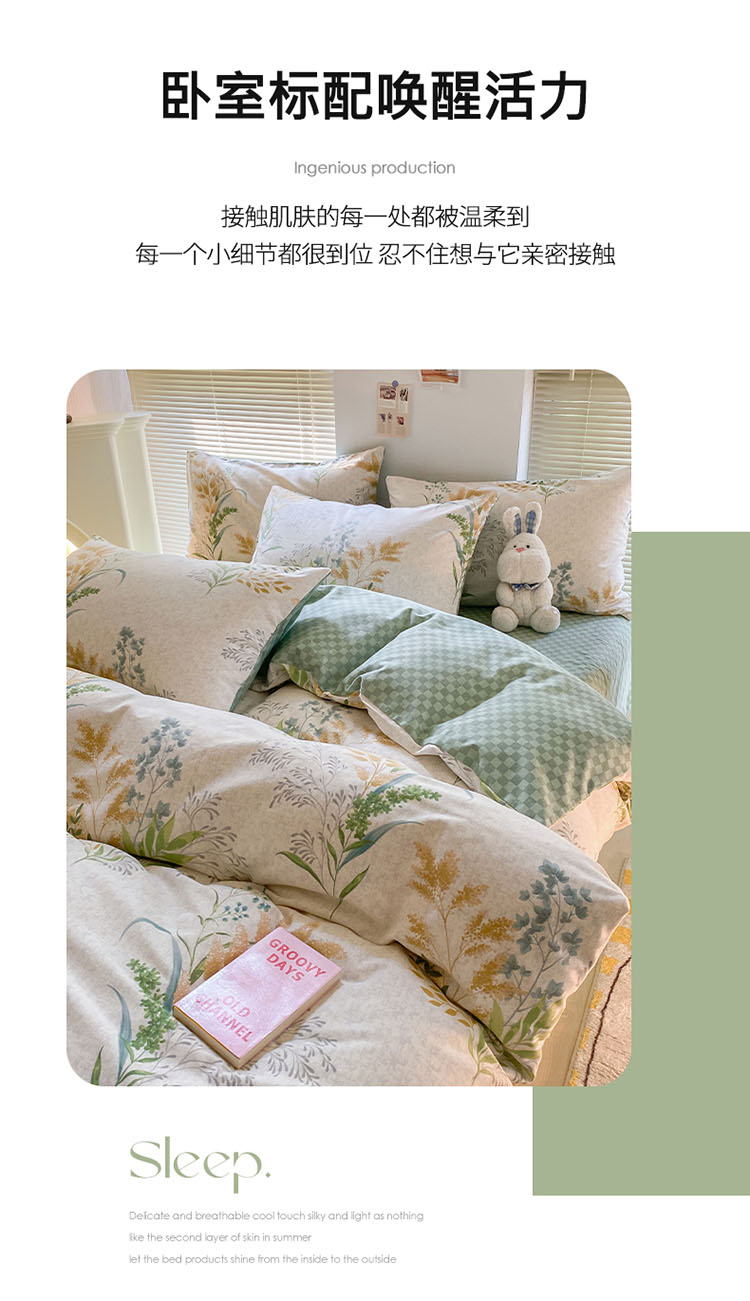 商品名称:雅居纺 2022新款生态磨毛四件套 六叶