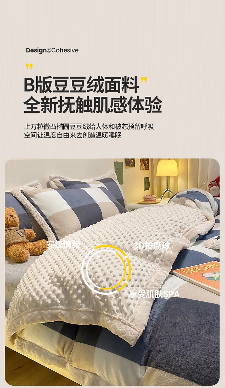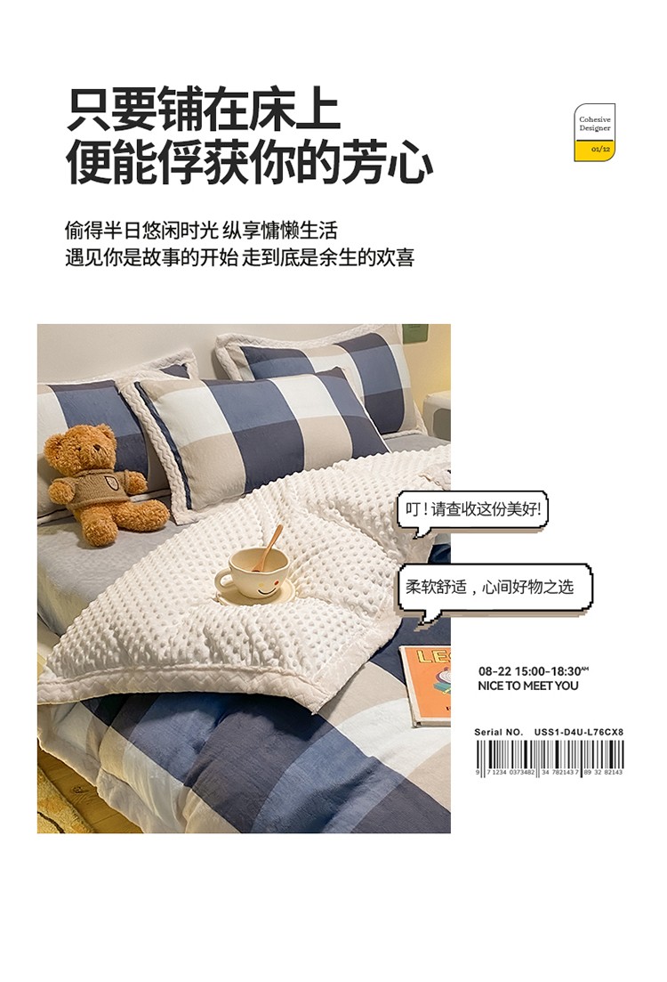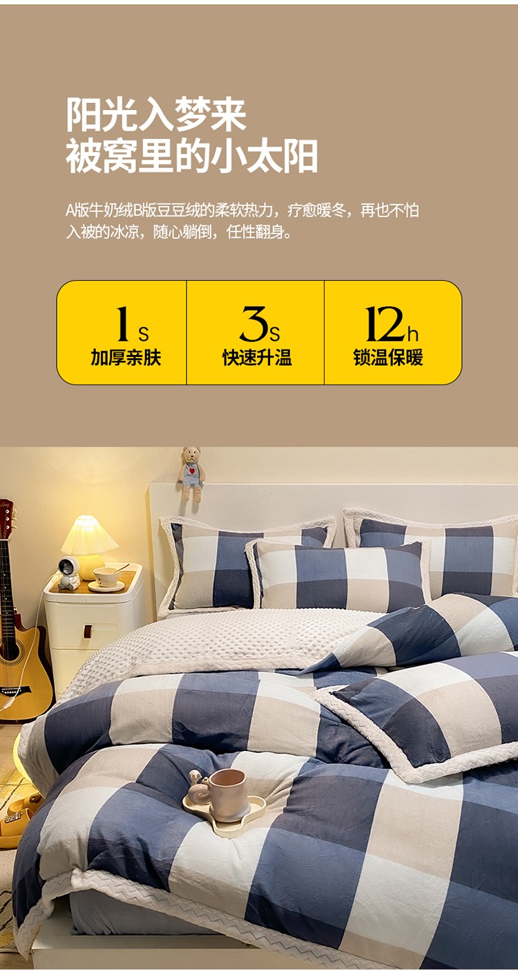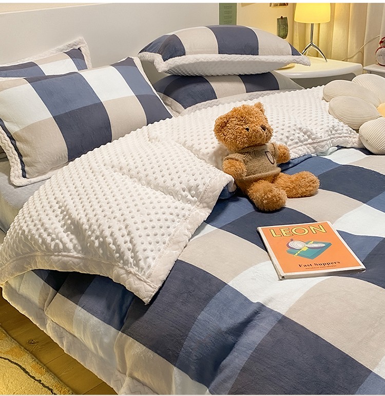 澳梵 2022新款牛奶绒豆豆绒四件套 蓝格