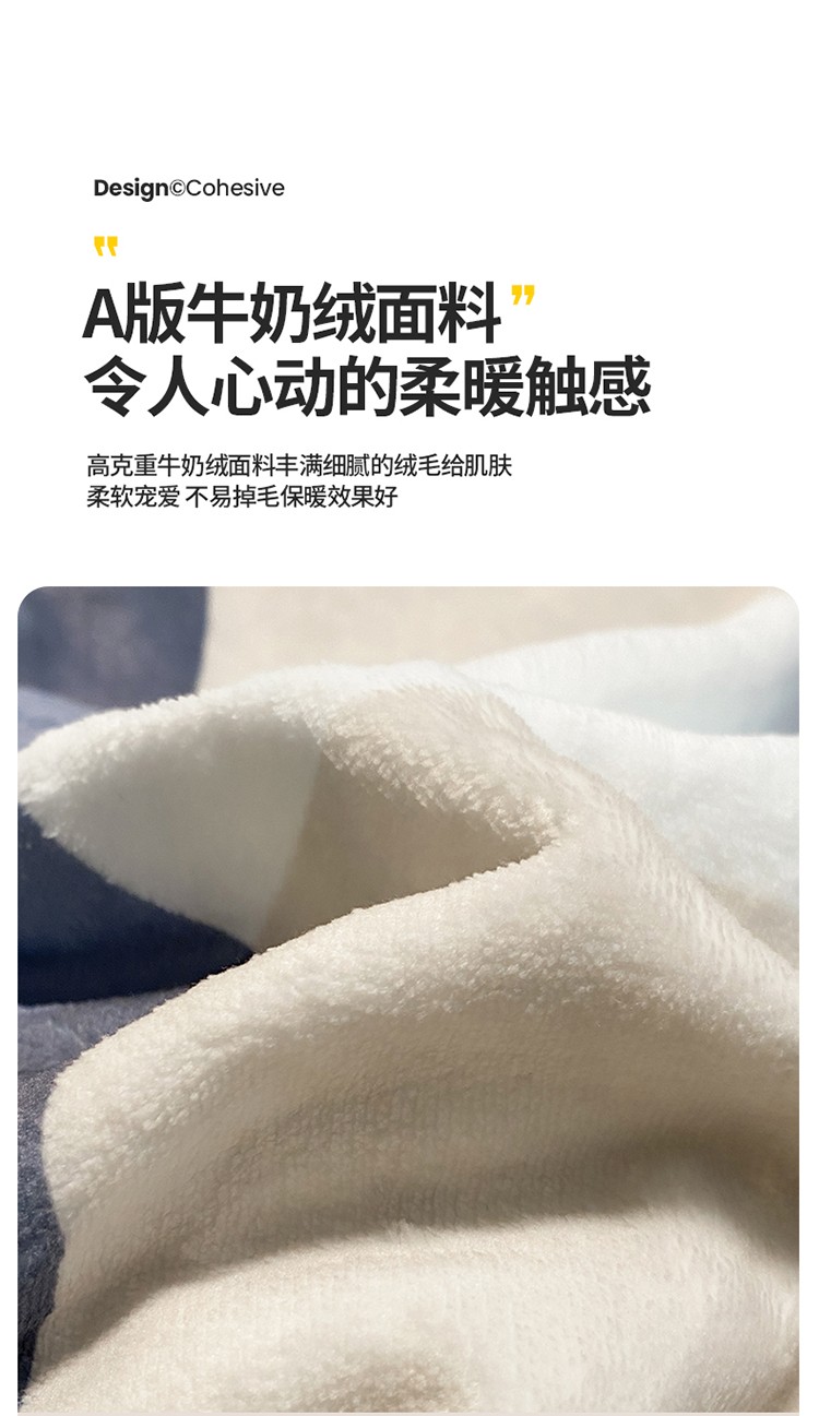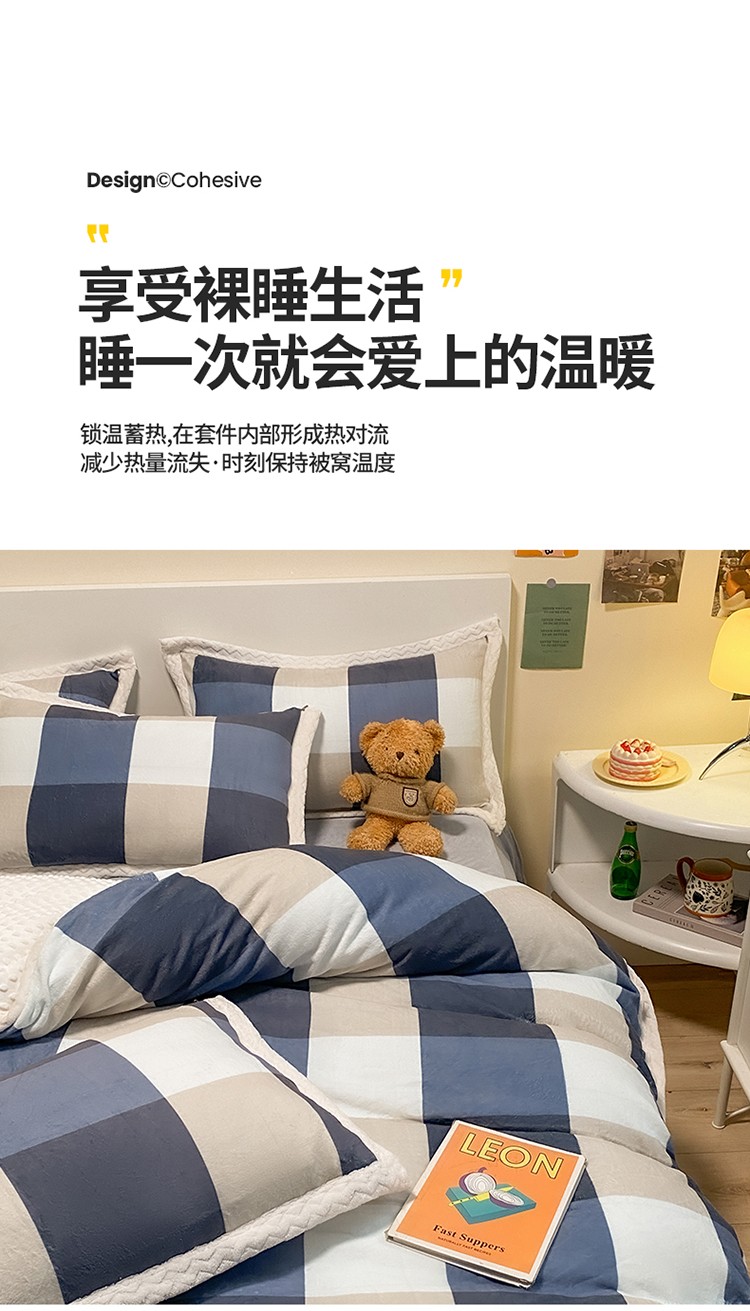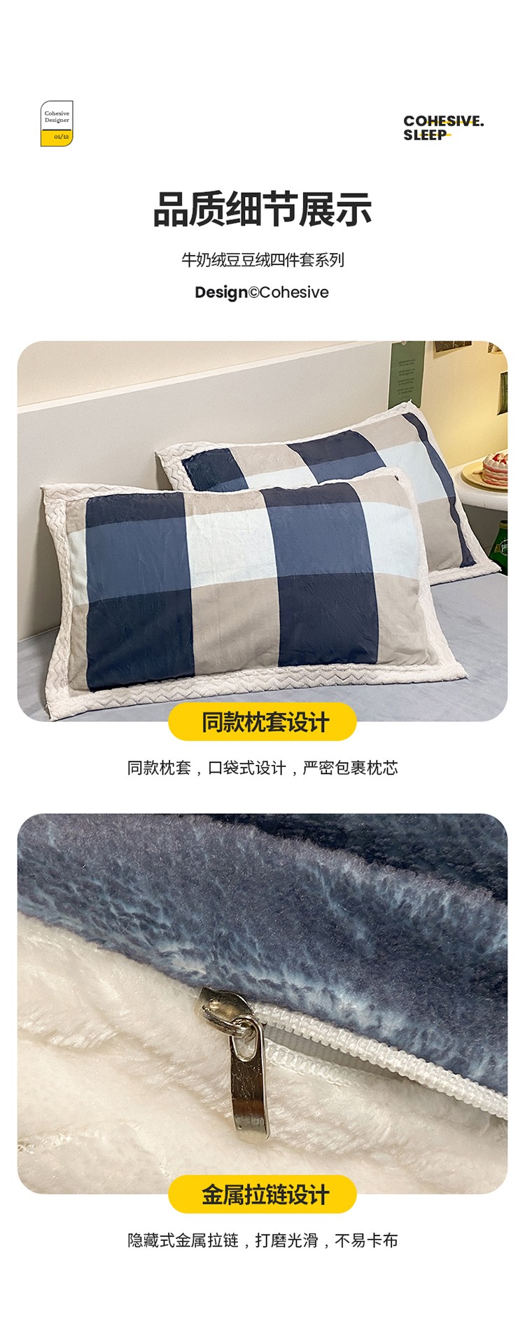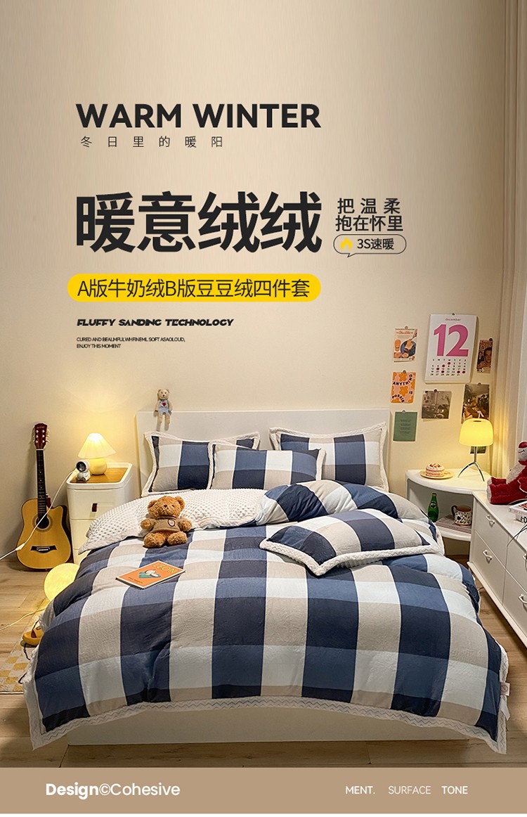 澳梵 2022新款牛奶绒豆豆绒四件套 蓝格