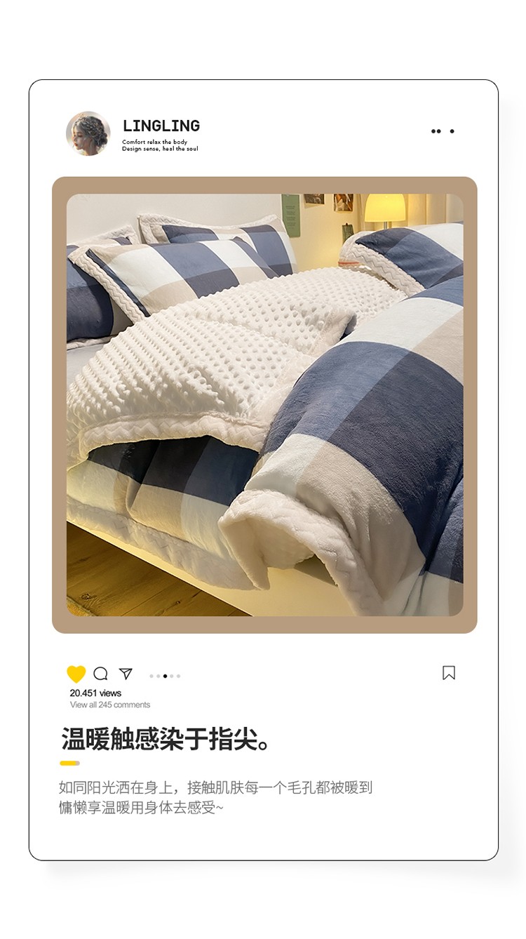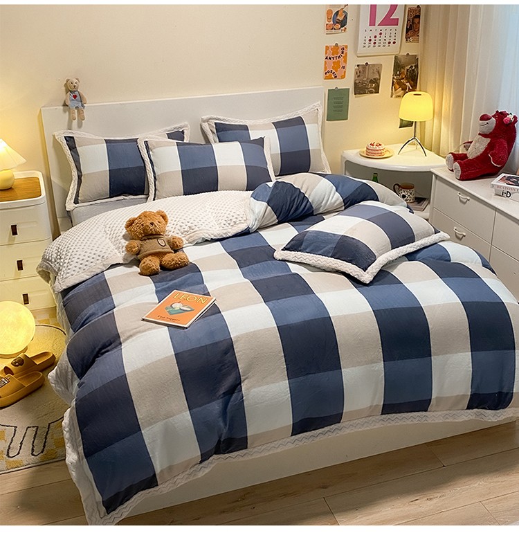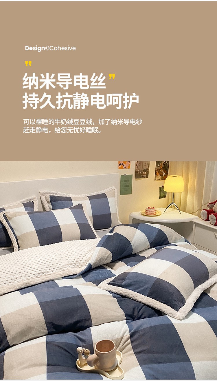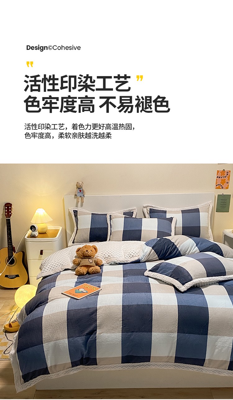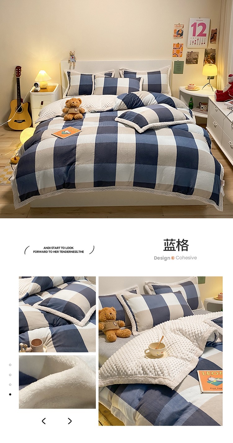 商品名称:澳梵 2022新款牛奶绒豆豆绒四件套 蓝格
