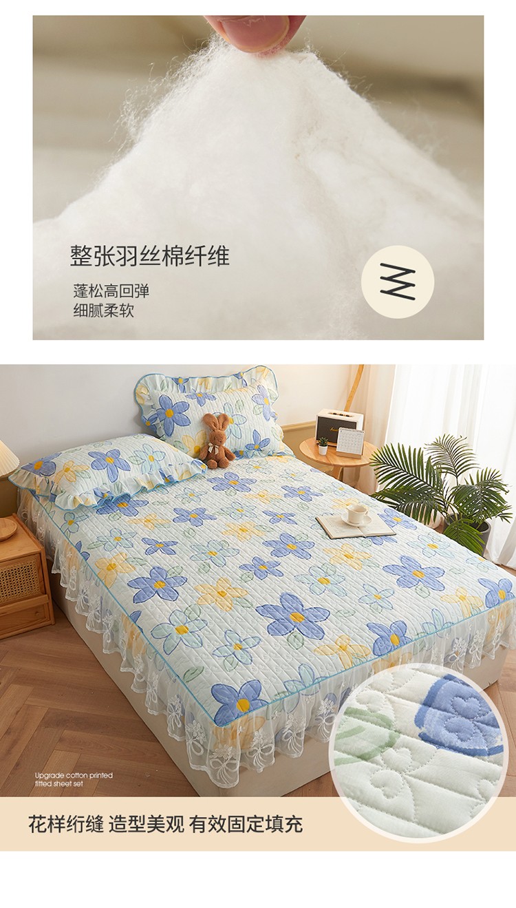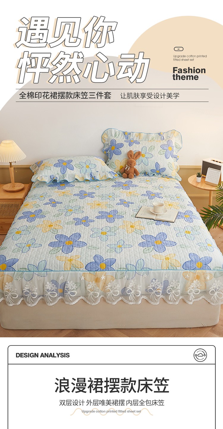 宜凡 2023新款四季款夹棉小清新床笠三件套 千禾