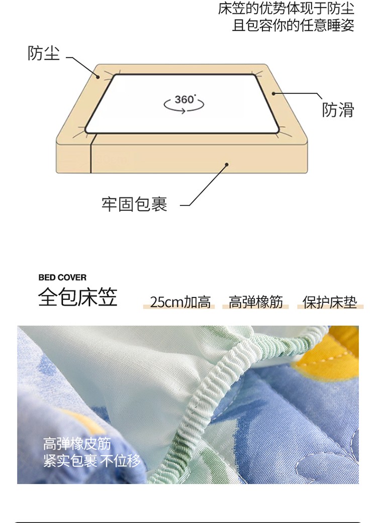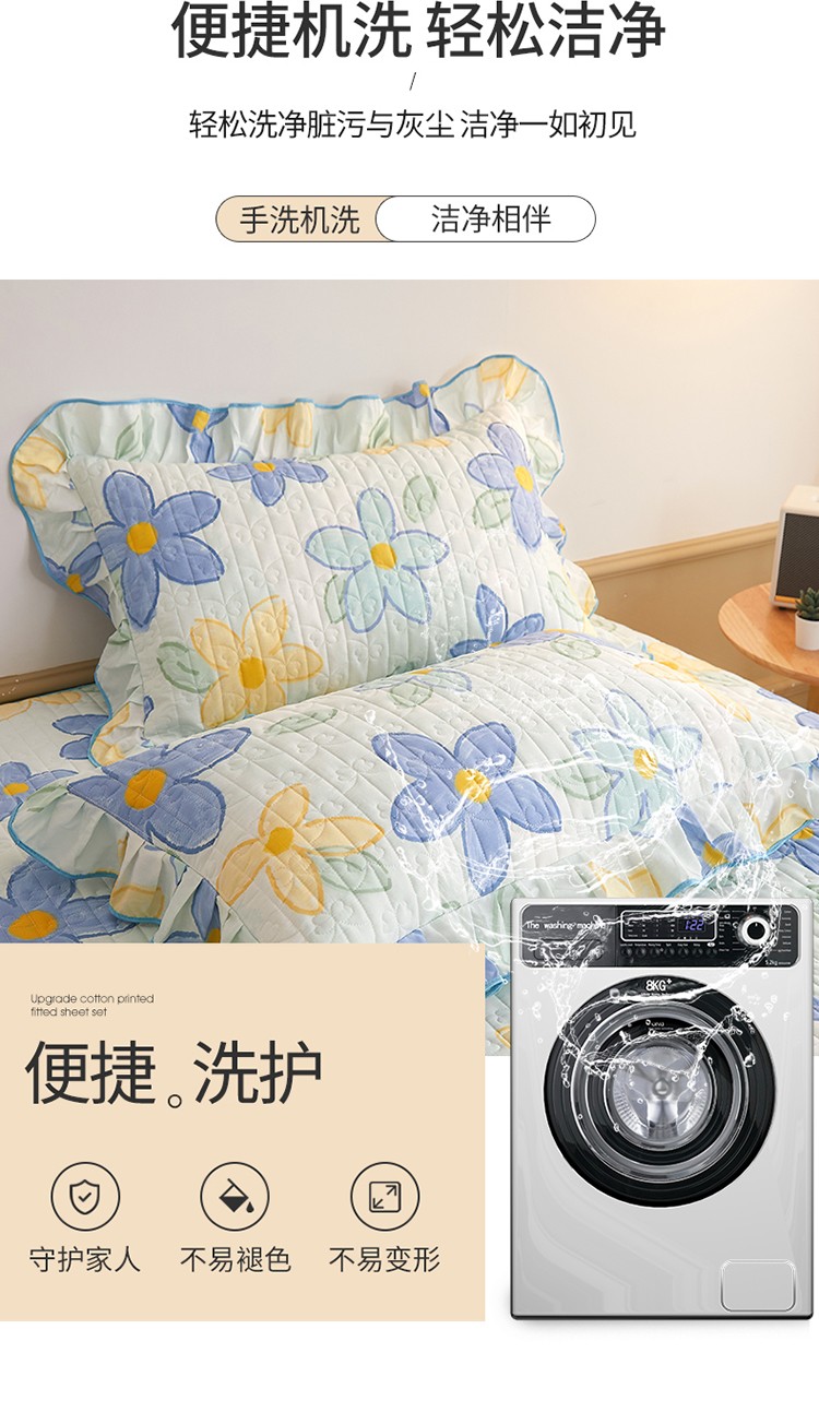 商品名称:宜凡 2023新款四季款夹棉小清新床笠三件套 千禾