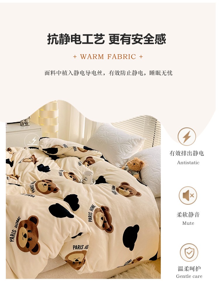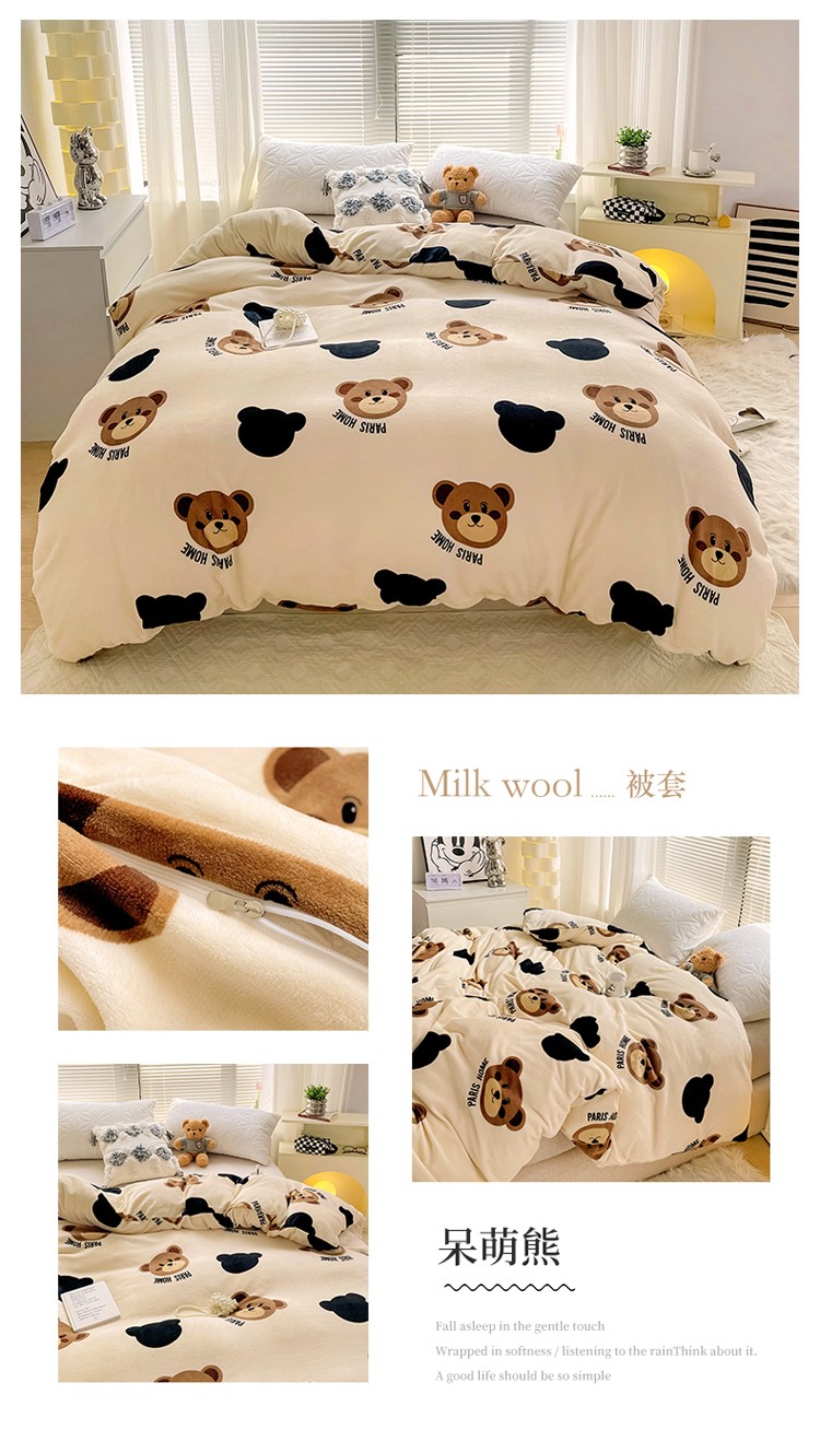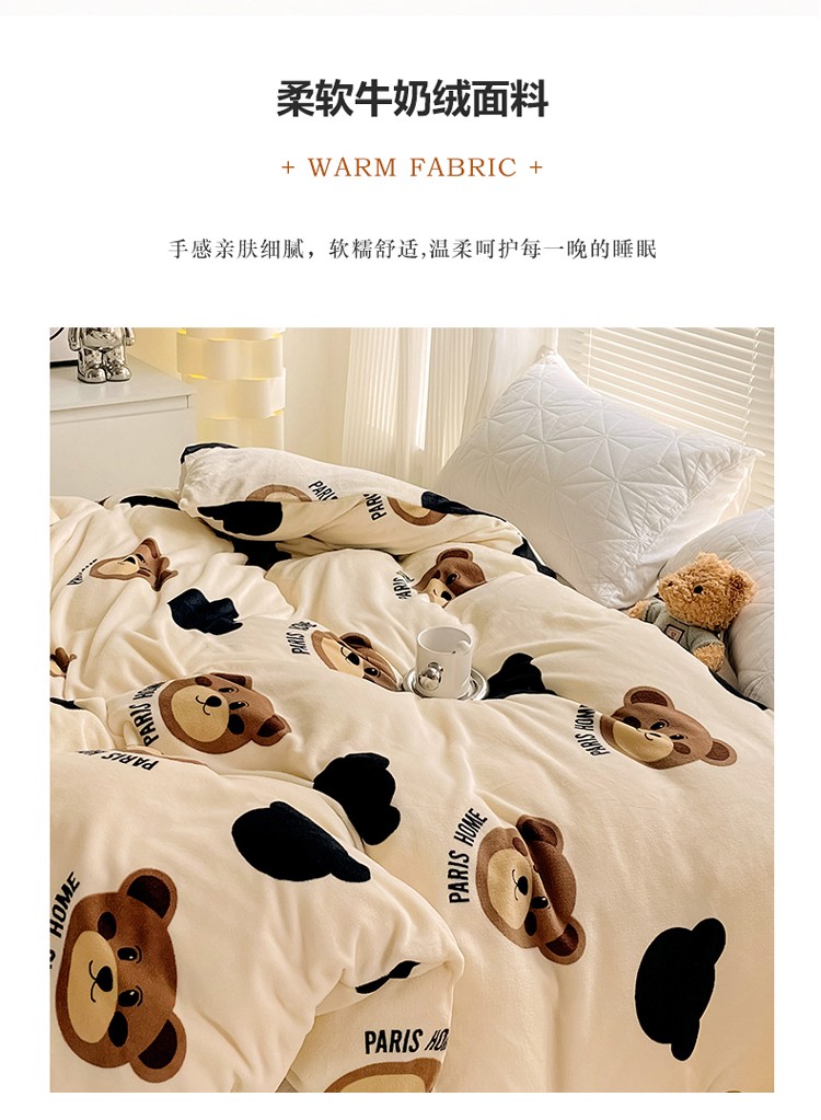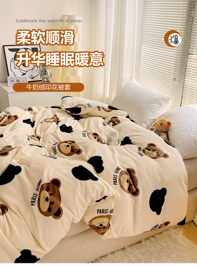 捌月 2024冬季新款印花牛奶绒-被套 呆萌熊