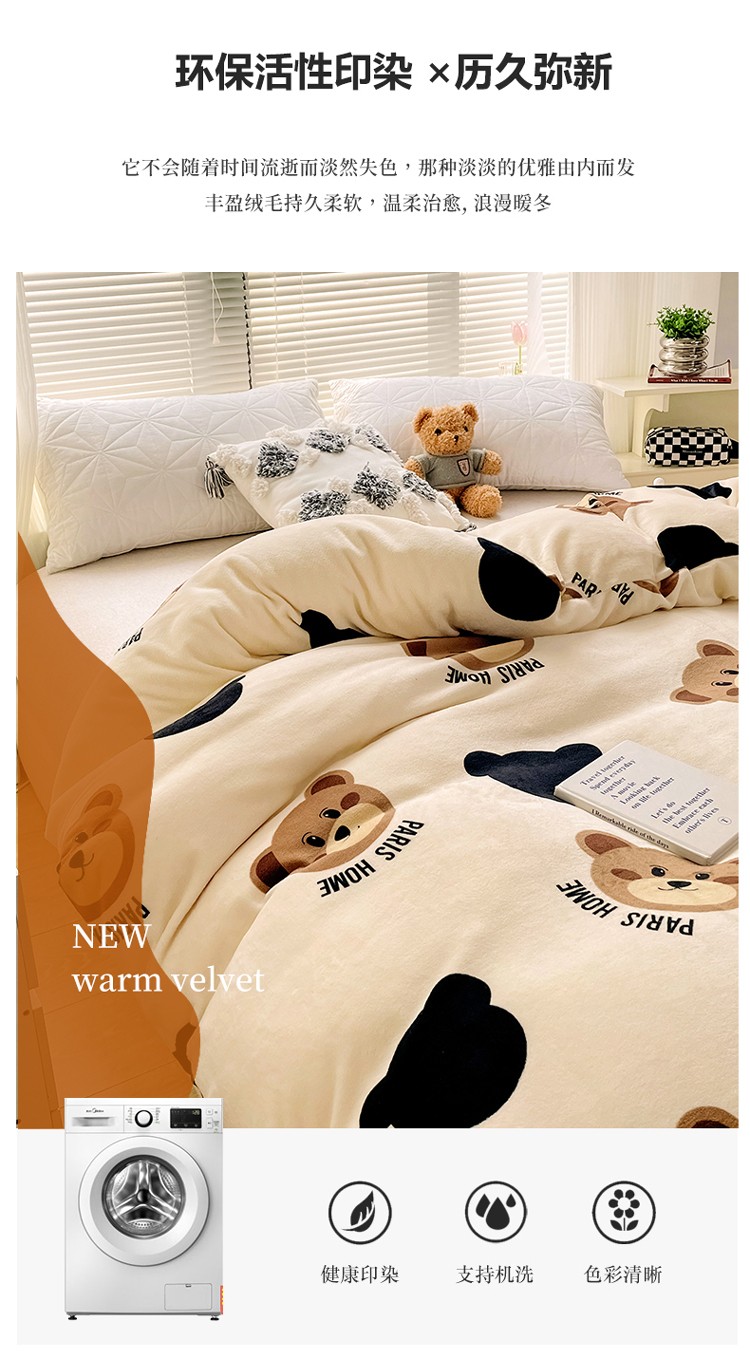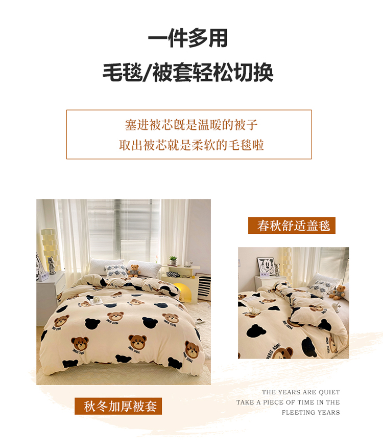 商品名称:捌月 2024冬季新款印花牛奶绒-被套 呆萌熊