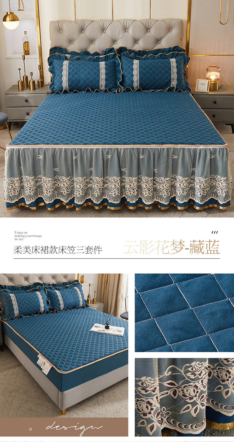 当前位置: 91家纺网 > 商品网购 > 床品套件 > 三件套 > 网红馆 2025新款云影花梦脱卸床笠式床裙三件套 云影花梦-藏蓝
