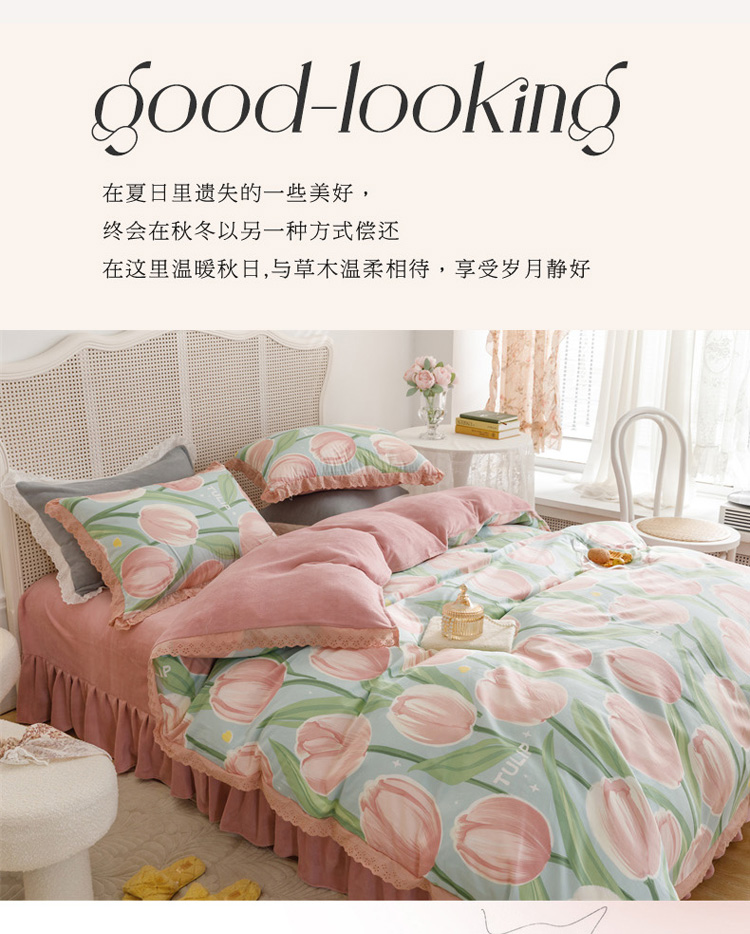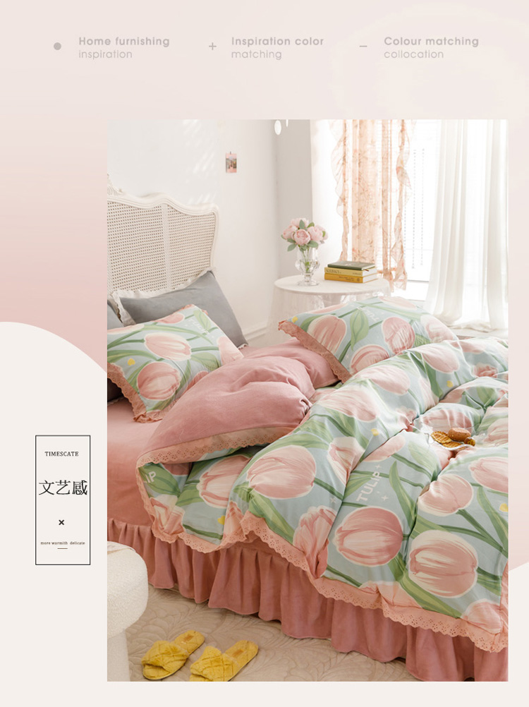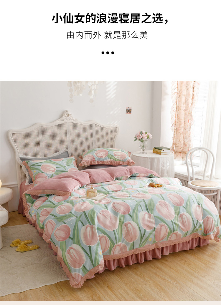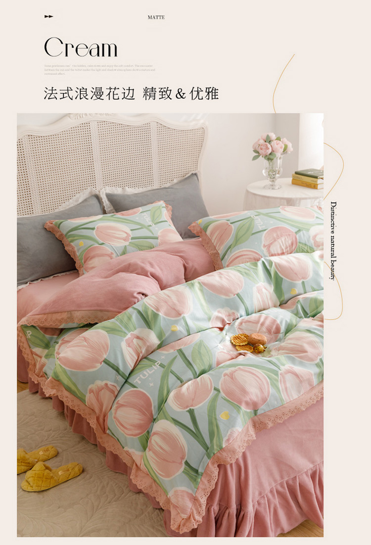 菊上 2022新款法式花边款-棉加绒四件套 朵啦