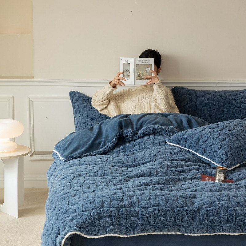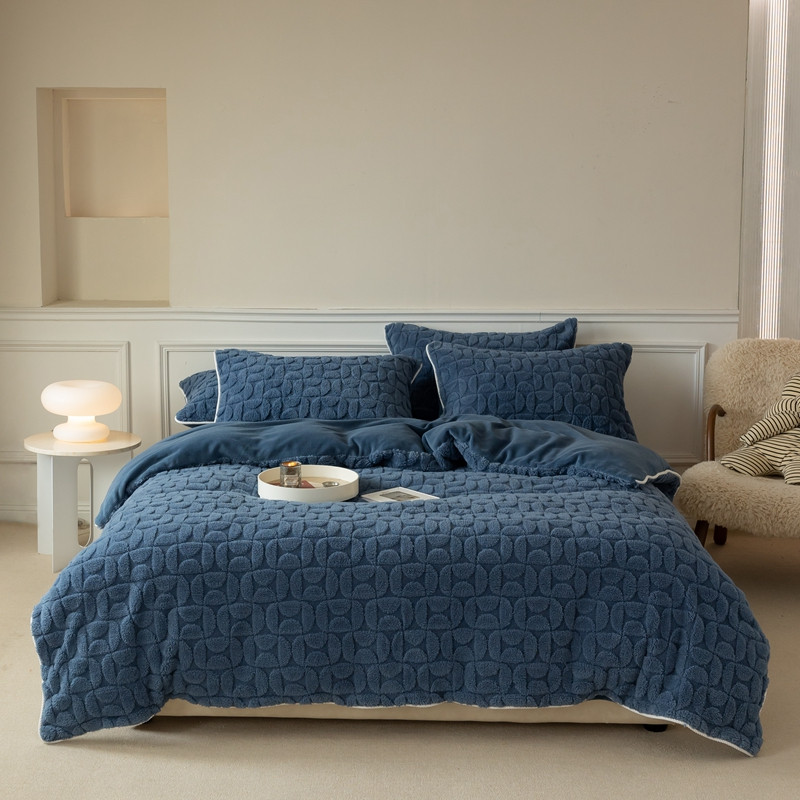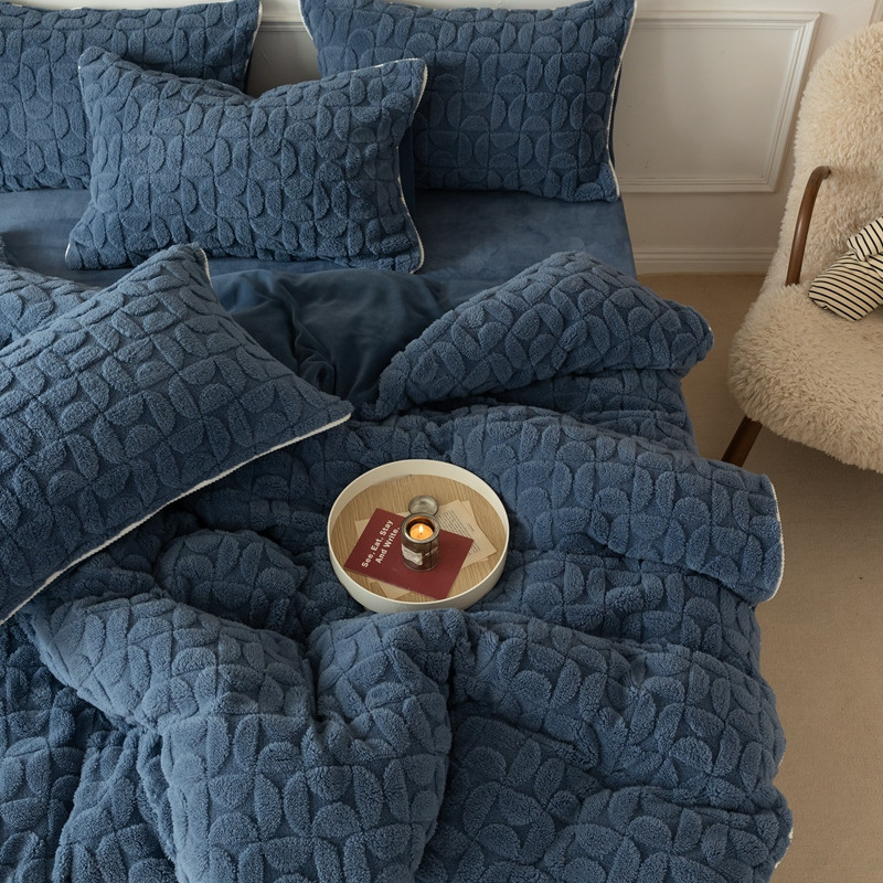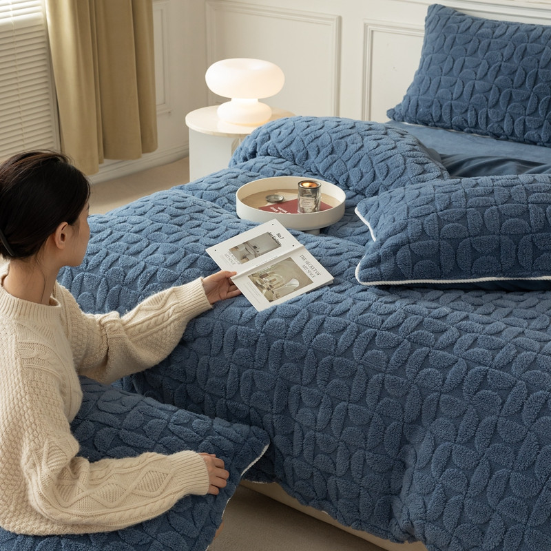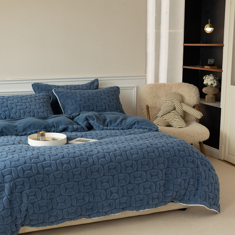 商品名称:源启生活 2022冬季新款提花牛奶绒四件套(会员-10) 弦月蓝