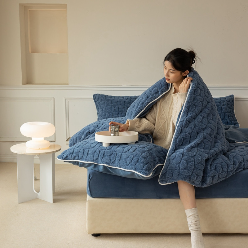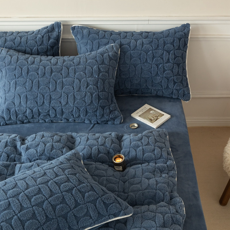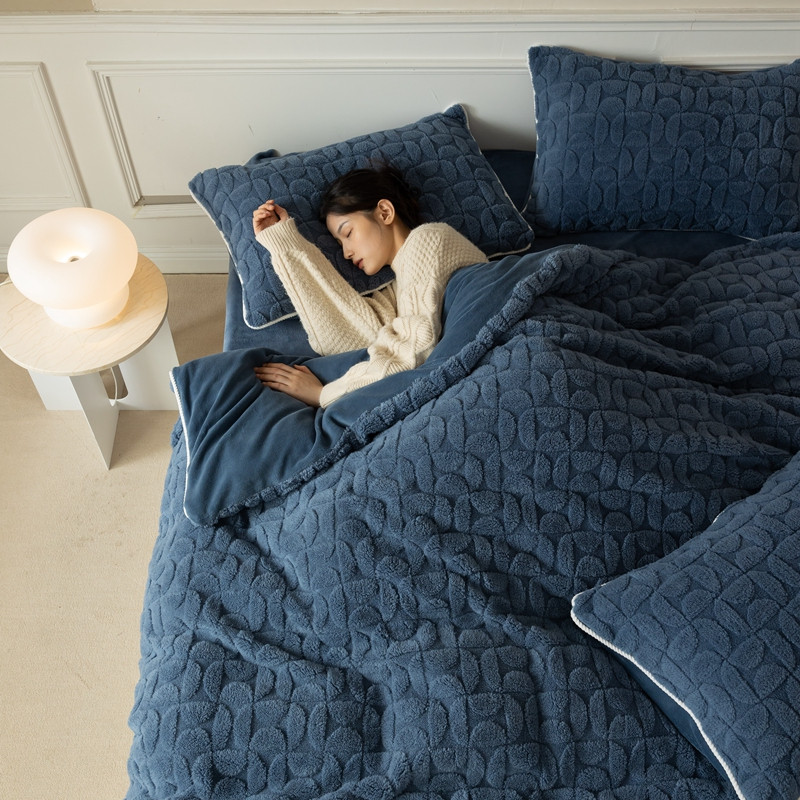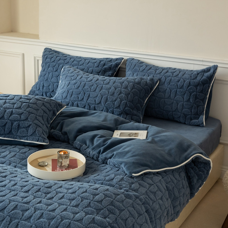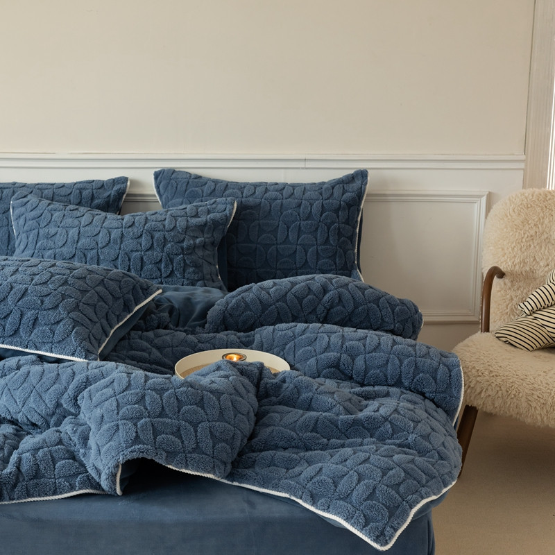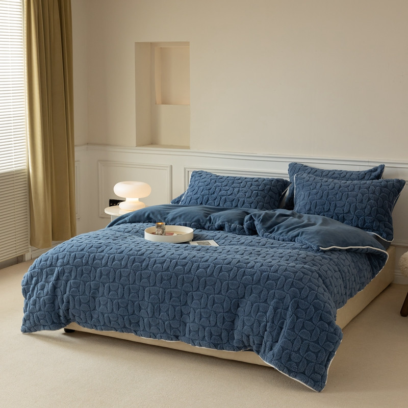 商品名称:源启生活 2022冬季新款提花牛奶绒四件套(会员-10) 弦月蓝