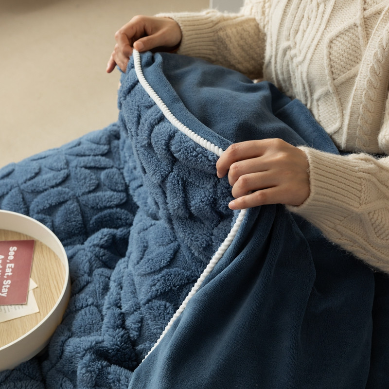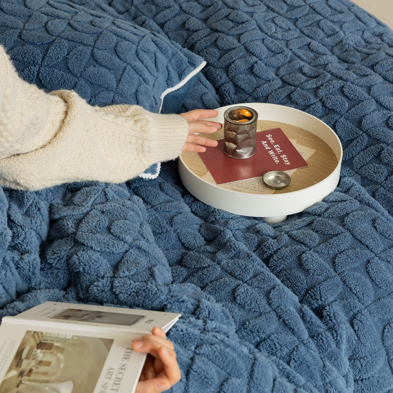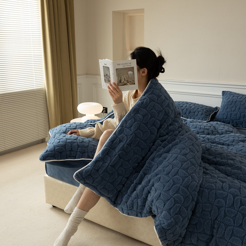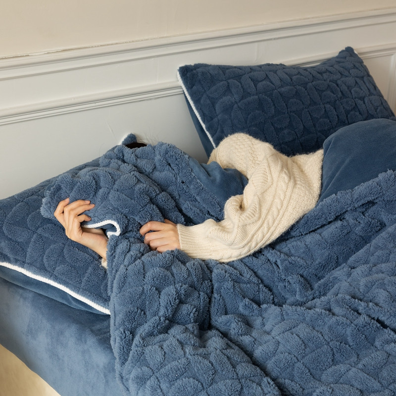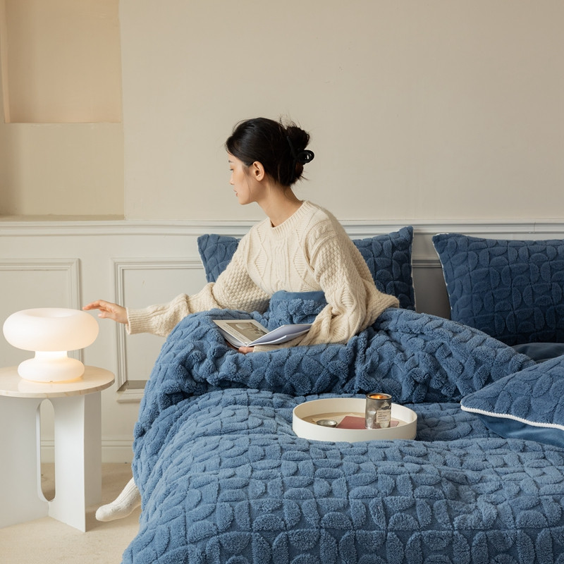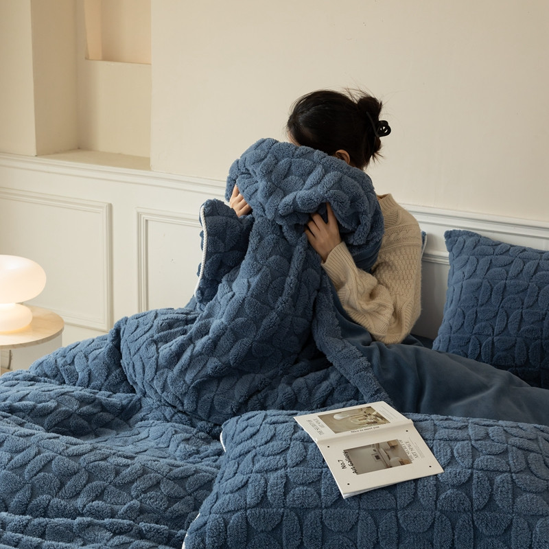 源启生活 2022冬季新款提花牛奶绒四件套(会员-10) 弦月蓝