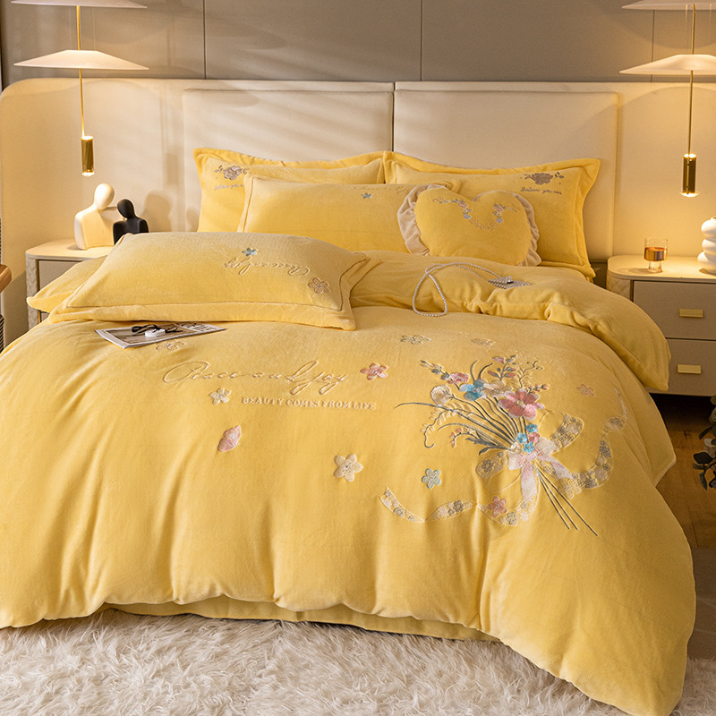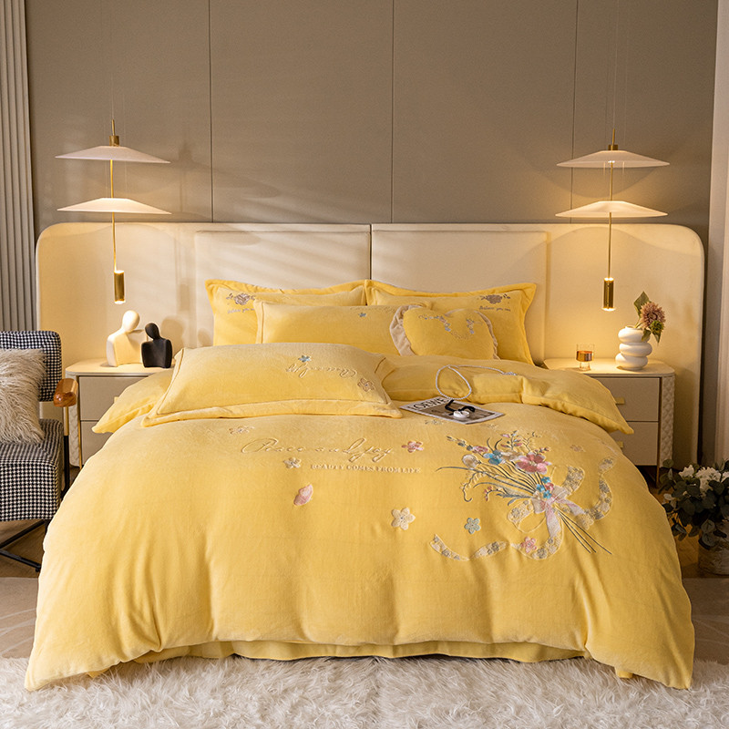 商品名称:宅家居 2023新款蒂娜系列加厚牛奶绒刺绣四件套 蒂娜-黄色