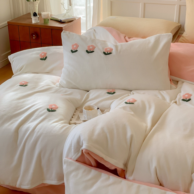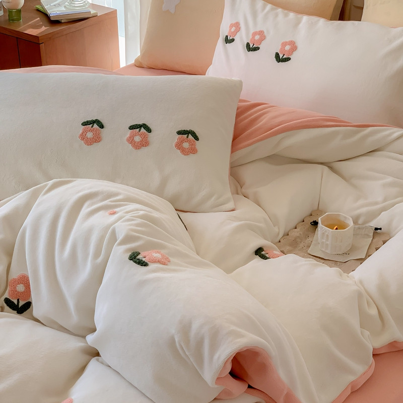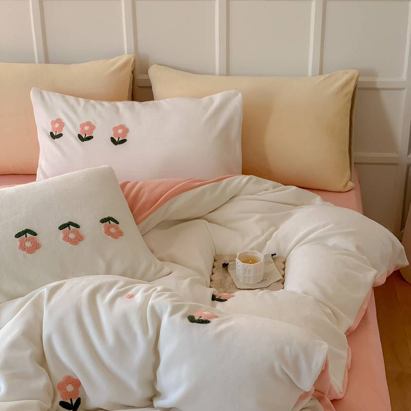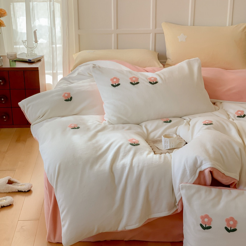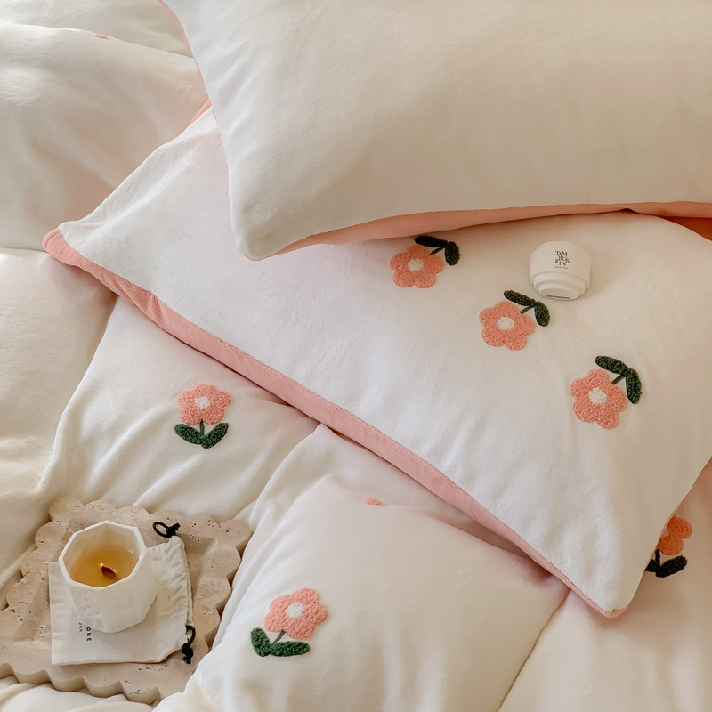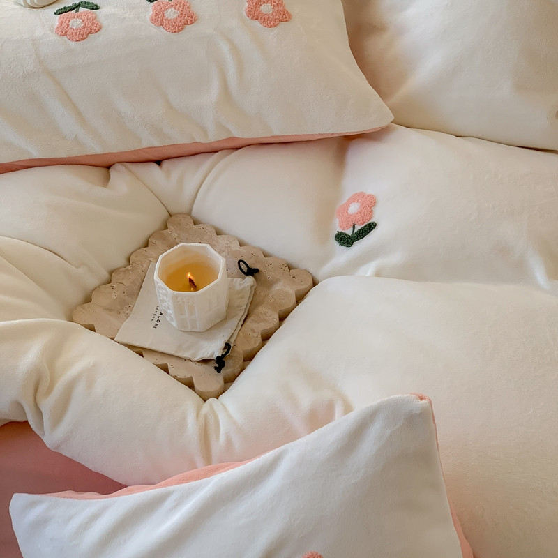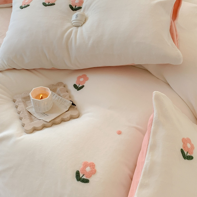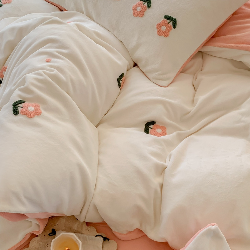 商品名称:时年 2022新款牛奶绒毛巾绣四件套 花香