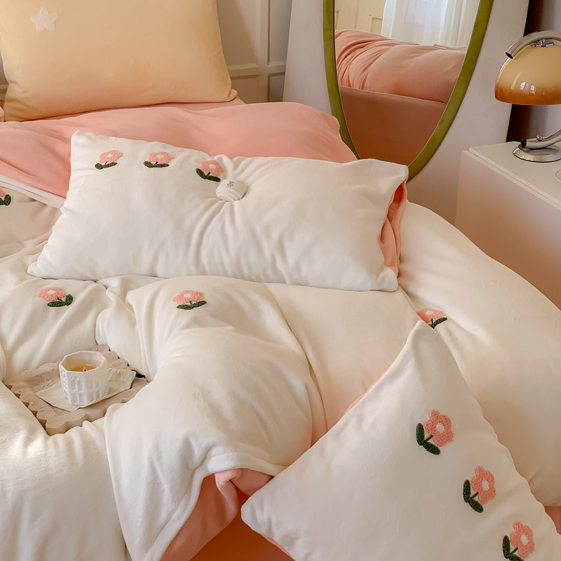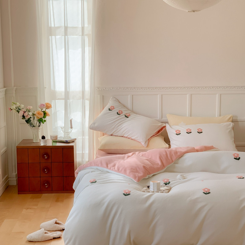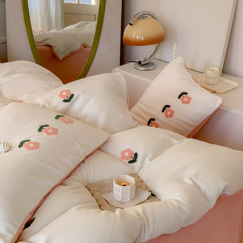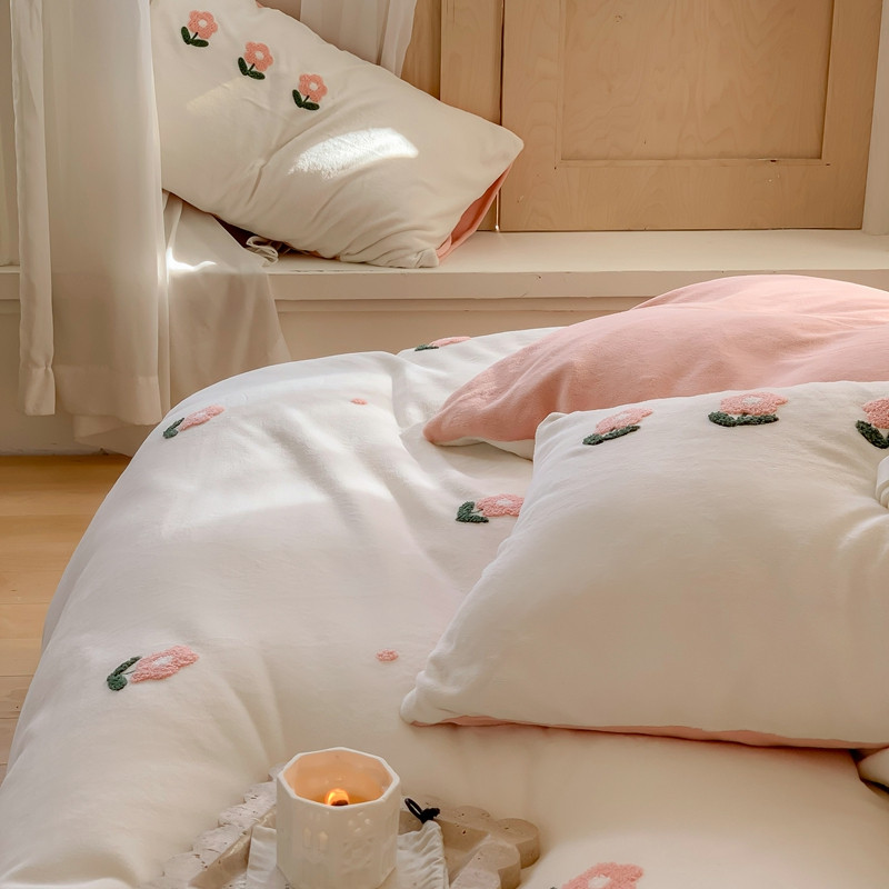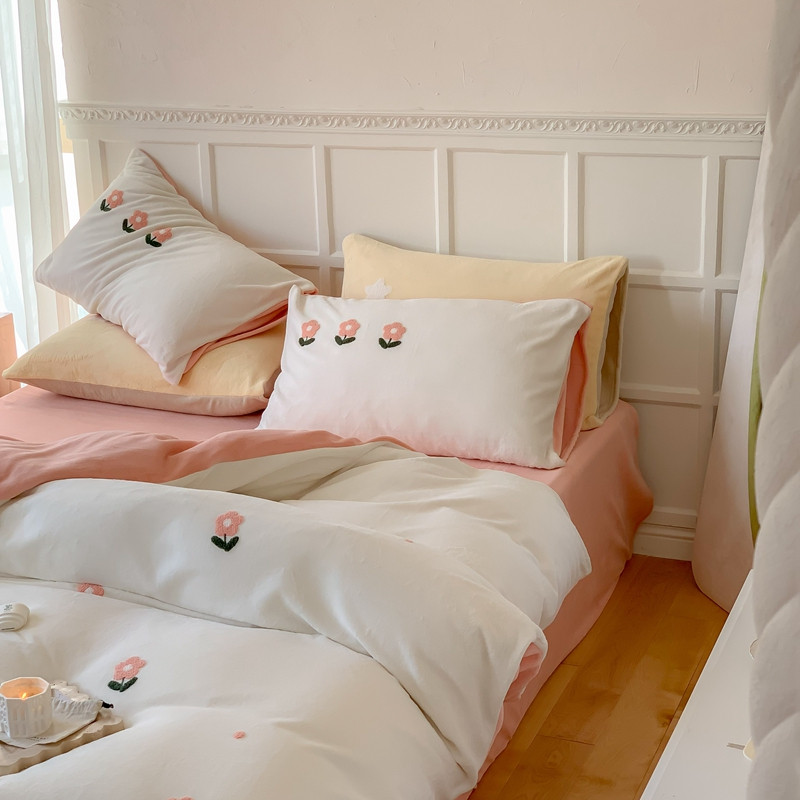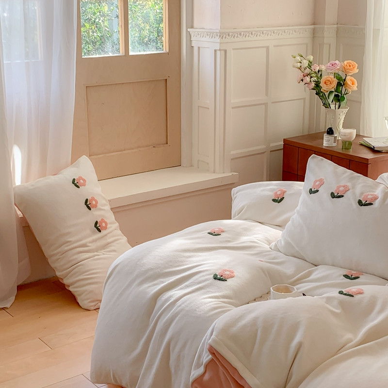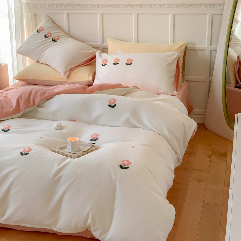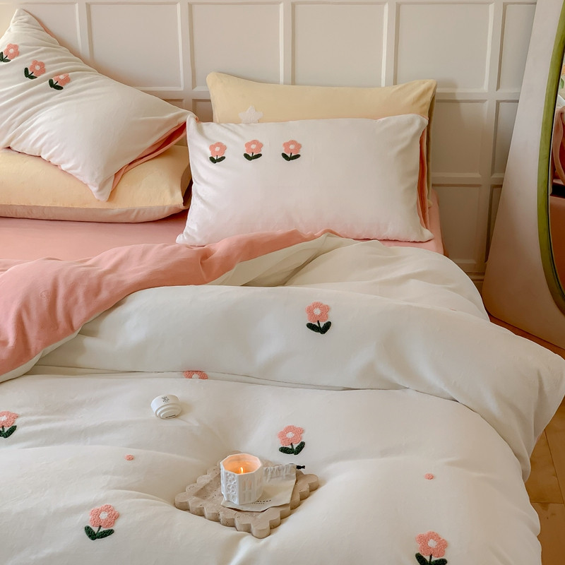 商品名称:时年 2022新款牛奶绒毛巾绣四件套 花香